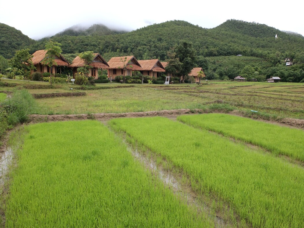 We keep it simple here. 1 km walk from Pai walking street. Peaceful setting tucked away from all the noise. Rise with rooster crowing in the morning with cat and dog playing in the garden, walk in the paddy field and feed the cow with banana during the day, and enjoy quite afternoon sun set. All cottages equipped with aircon and private bathroom. Simple breakfast toast, tea and coffee are available in the morning.