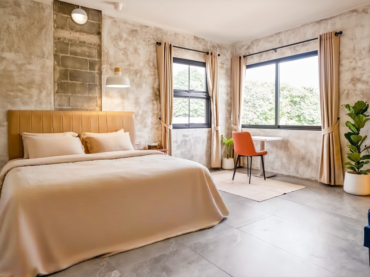 Welcome to our tranquil villas, a serene retreat nestled in the heart of Pai's lush greenery. These two spacious villas blend traditional Thai charm with modern comfort. Enjoy vibrant stained-glass windows, handcrafted furniture, and peaceful garden views. Includes your own private hot spring pools. Perfect for relaxation. We're just a 15 minute motorcycle or car ride from Pai’s cultural attractions and natural wonders. Your peaceful escape awaits!