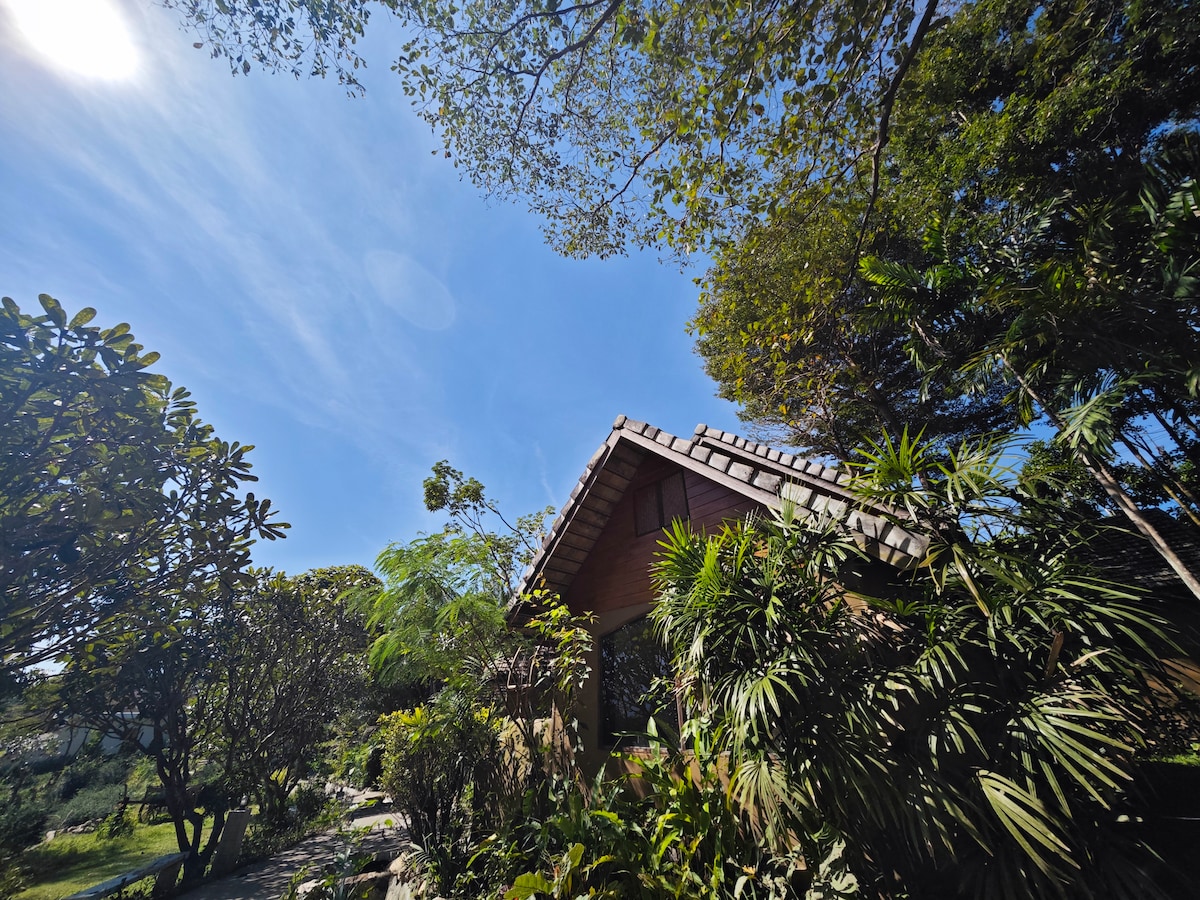 Enjoy your own private villa surrounded by gardens and mountain views. Take a stroll along the paths, relax by the lake, or hang out on the rooftop terrace and soak in the scenery. With your own bedroom, living area, and private bathroom, it’s the perfect spot to unwind and enjoy the calm of nature — all just a short drive from Pai town.