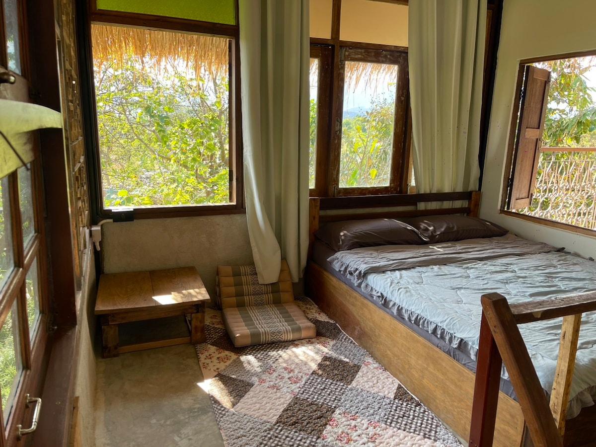 House with great view, working desk, 1 queen size bed, 1 sofa bed (for max 2 kids, or 1 extra adult or just to relax) Kitchen is on ground floor & bathroom is outside directly adjacent to the house. The House is directly next to a beautiful small stream & the Saturday market park with huge playground. Surrounded also by many cafe's, restaurants, Yoga Centers & co-workings. The night market at the famous walking street is only a 10 minute walk.