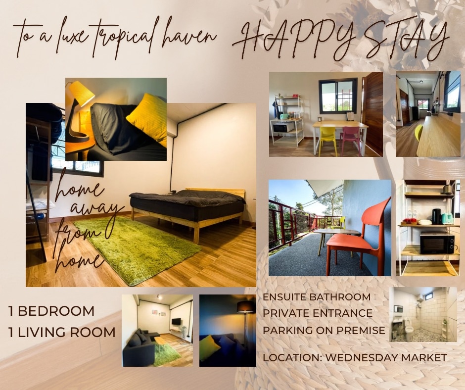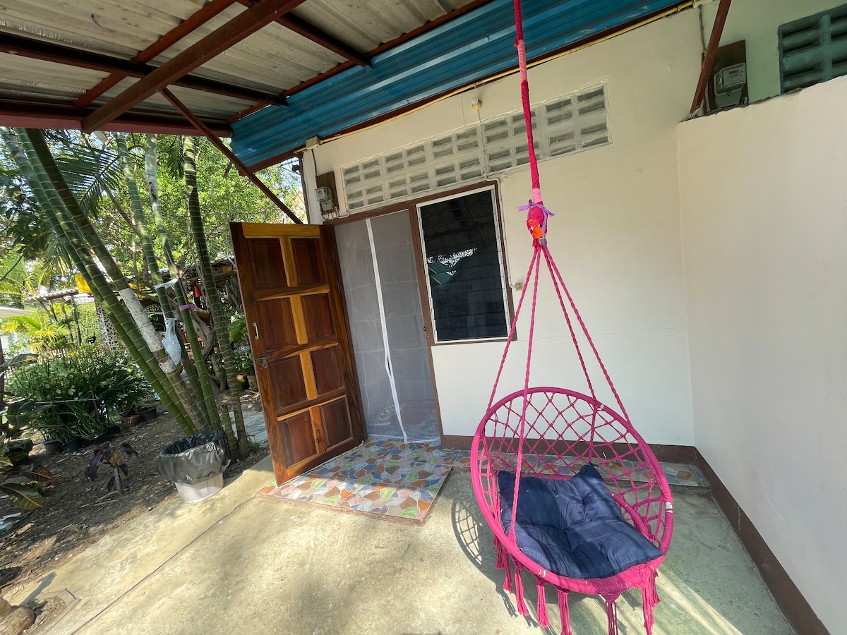 House with great view, working desk, 1 queen size bed, 1 sofa bed (for max 2 kids, or 1 extra adult or just to relax) Kitchen is on ground floor & bathroom is outside directly adjacent to the house. The House is directly next to a beautiful small stream & the Saturday market park with huge playground. Surrounded also by many cafe's, restaurants, Yoga Centers & co-workings. The night market at the famous walking street is only a 10 minute walk.
