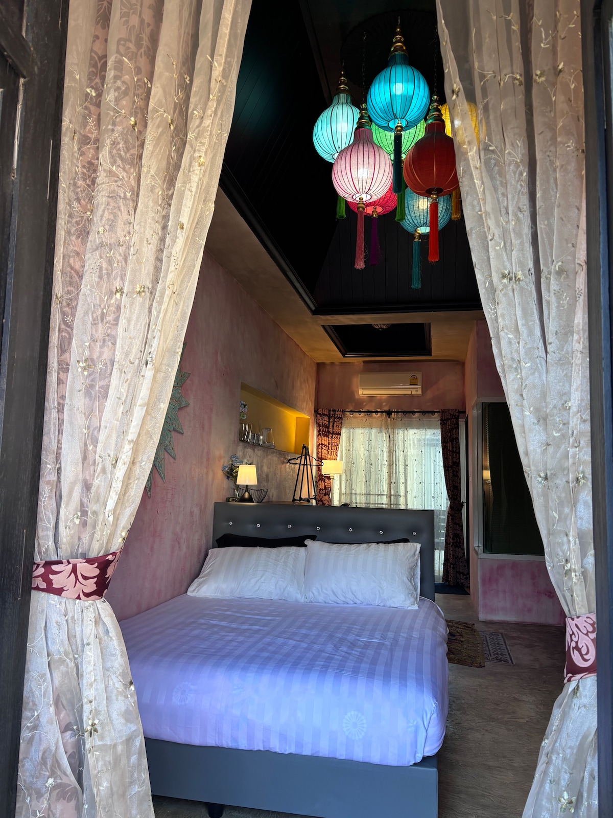 King size bed. Right beside and facing the Memorial Bridge. Suitable for traveller looking for peace & quiet away from busy and hectic lives. Here @ Him nam Pai you can finally layback relax & enjoy our mountain lives along with the nature.