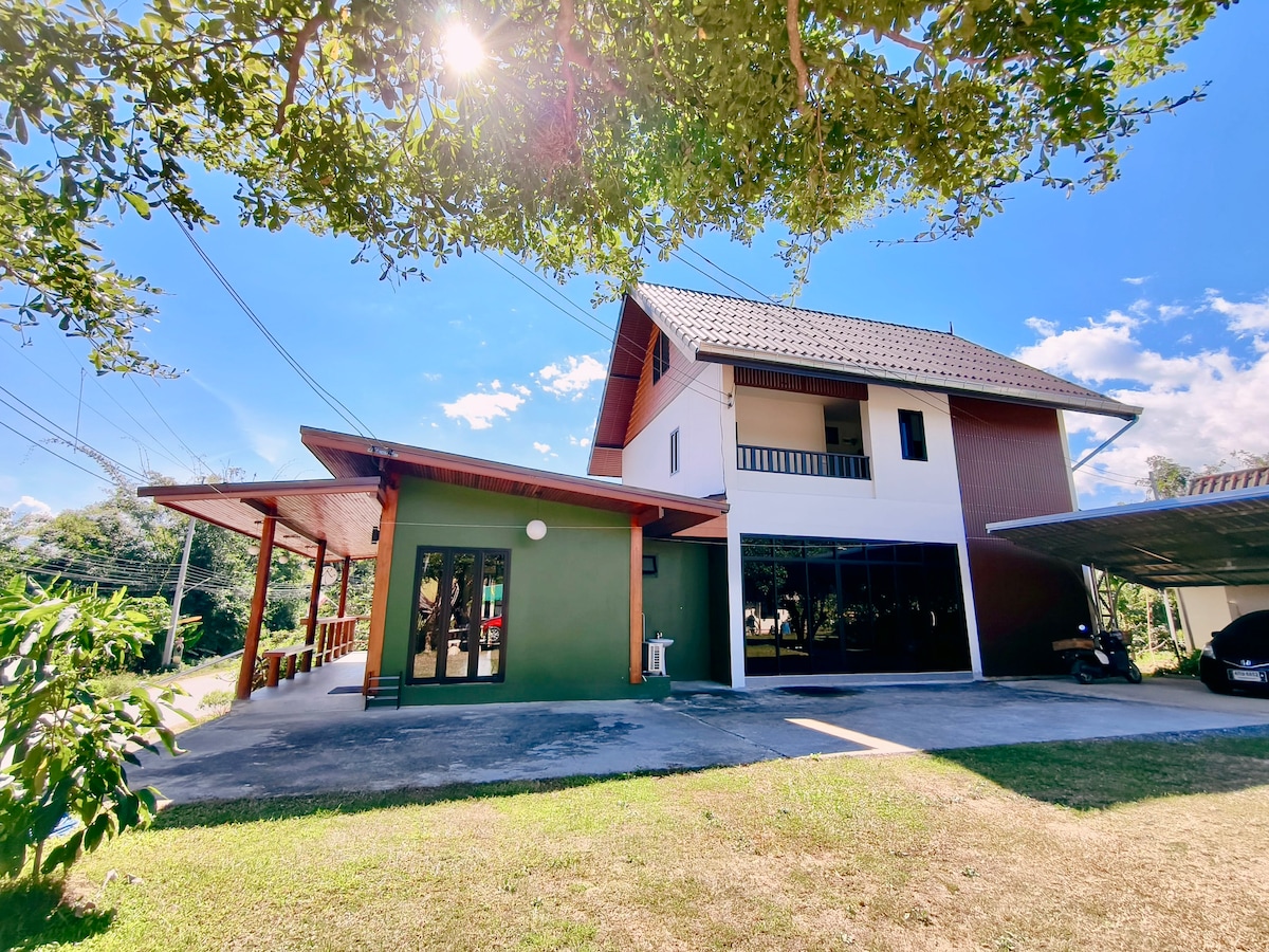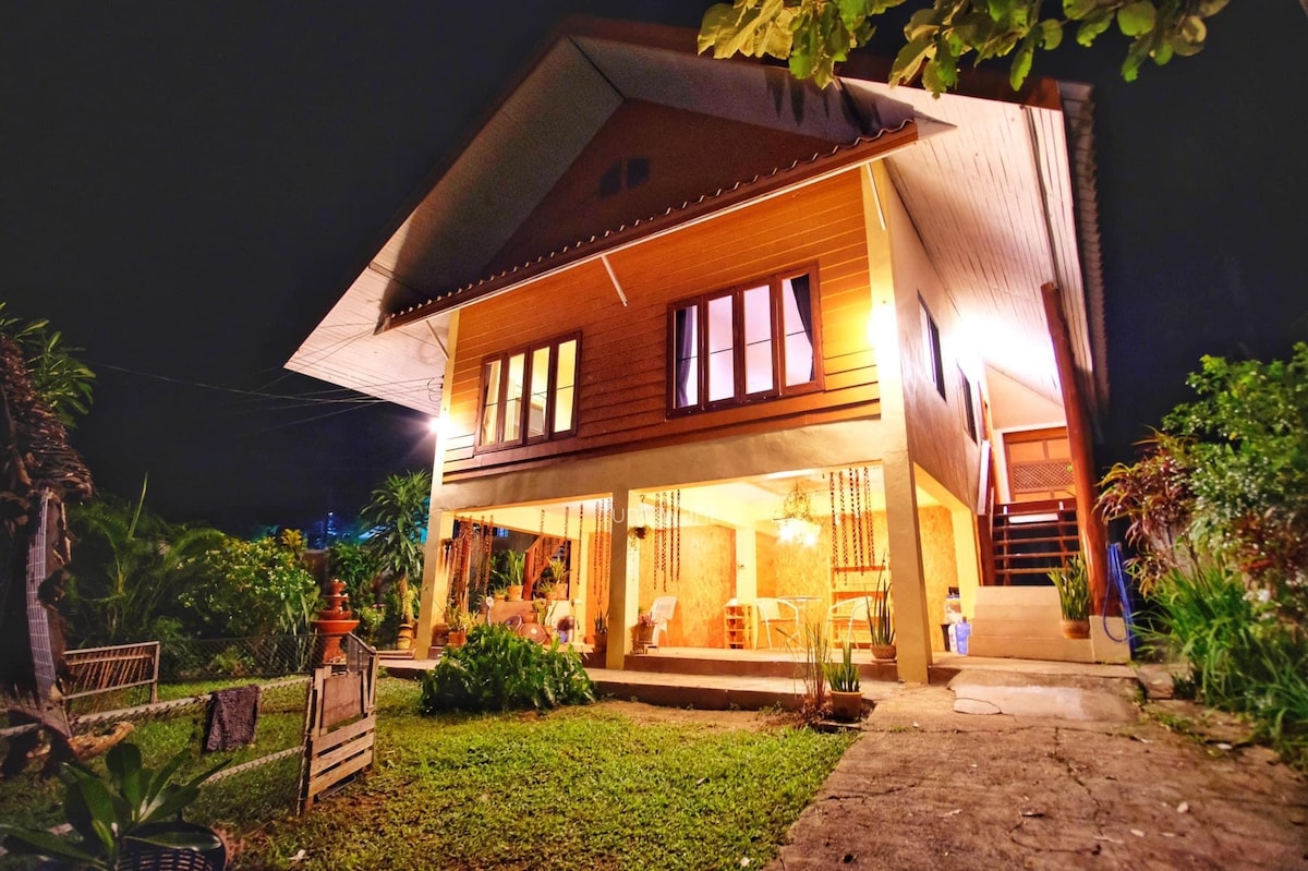 Experience an unforgettable stay in a cozy, nature-close home that is peaceful and just 1.8 km from the city. Conveniently located near a renowned vegan restaurant and coffee shop. The spacious property features a lawn, trees, and a pond. It offers privacy with a large front porch overlooking rice fields and sunsets. At night,enjoy the soothing sounds of nature. Highlight: Immerse yourself in the local Pai lifestyle during rice planting season, with farmers working right in front of the house.