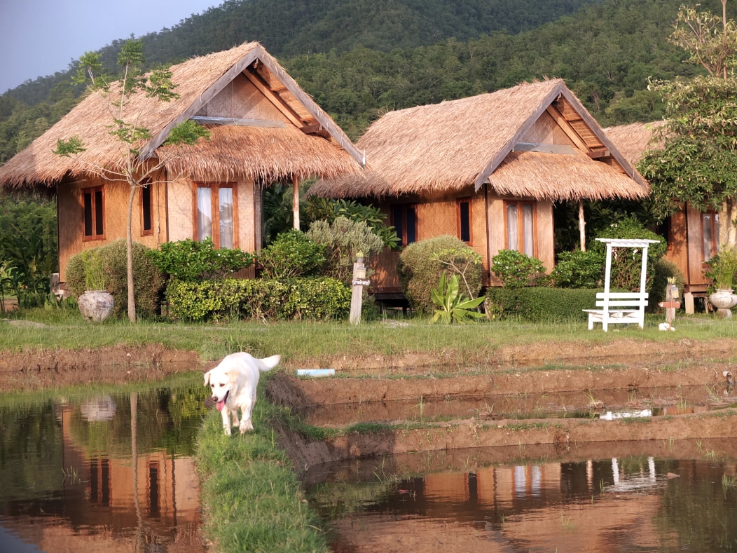 We keep it simple here. 1 km walk from Pai walking street. Peaceful setting tucked away from all the noise. Rise with rooster crowing in the morning with cat and dog playing in the garden, walk in the paddy field and feed the cow with banana during the day, and enjoy quite afternoon sun set. All cottages equipped with aircon and private bathroom. Simple breakfast toast, tea and coffee are available in the morning.