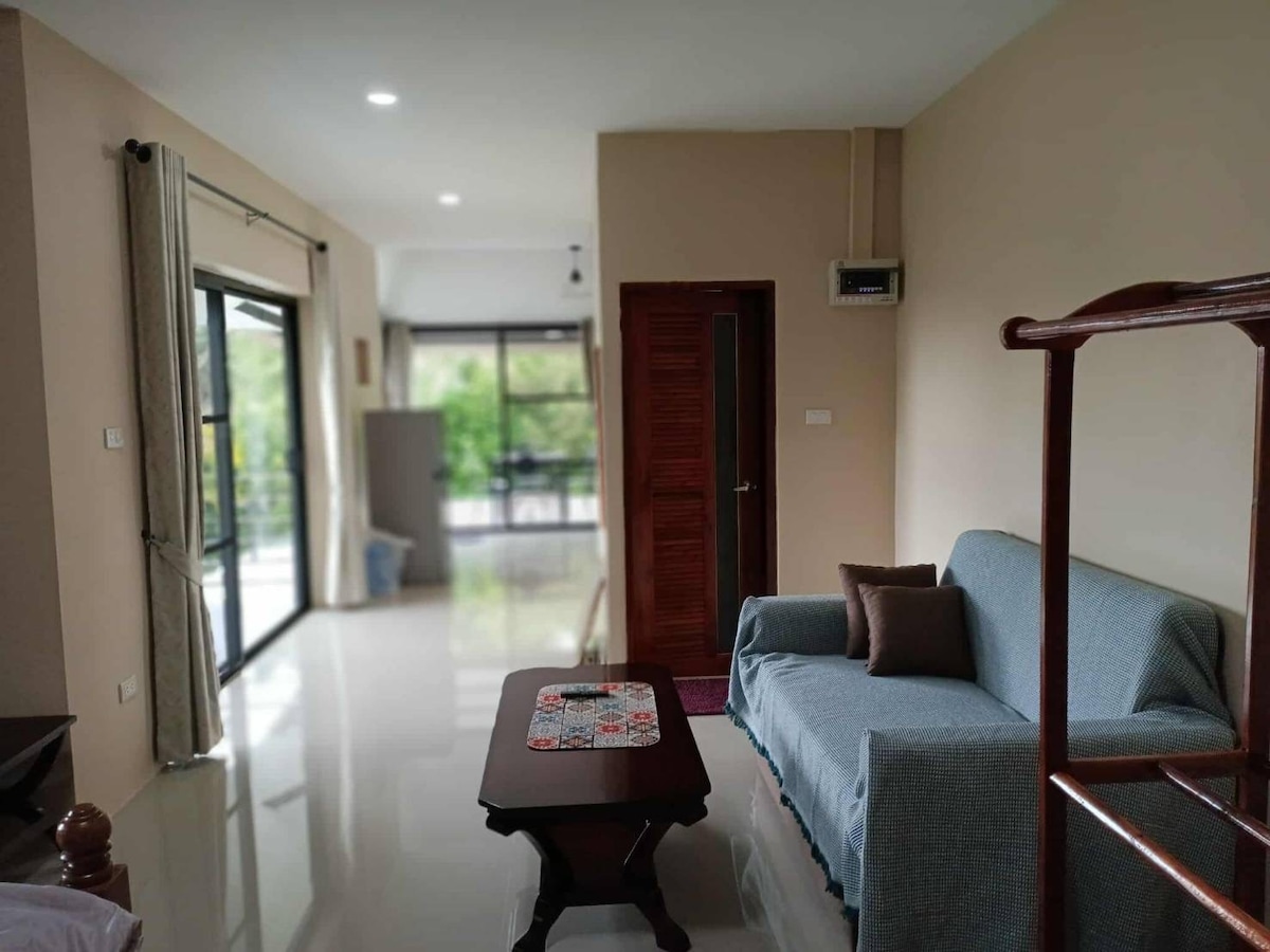 Welcome to House #323 — a peaceful, compact garden escape with fast Wi-Fi and a private sauna. Perfect for a small family, a couple, or close friends, this cozy cottage offers one bedroom, two full bathrooms, a living room with a full kitchenette, a dining area, a long balcony, a front yard, and a relaxing backyard by the end-stream of Mae Korn. Smoking is allowed outside only.