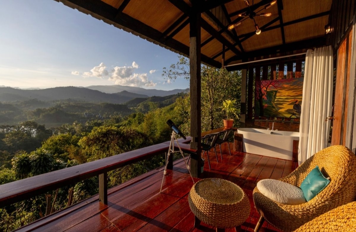 Perched atop a peaceful mountain ridge, this custom-built cabin offers sweeping views of a tranquil Thai farming village below. The property feels secluded and serene. From sunrise to sunset, you’ll enjoy a refreshing mountain breeze and panoramic vistas that stretch across the valley. On many mornings, you may even spot hot air balloons floating gently across the sky. Need transportation? We’d be happy to connect you with a friendly, trustworthy local driver at a fair price.