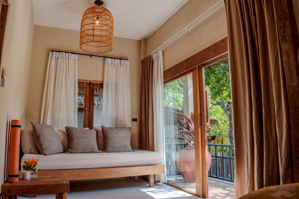 * Romantic, serene and peaceful environment 2 km from where HBO Max's filmed their hit show "White Lotus" season 3. * Just a 20-second walk to a beautiful, calm, sandy beach * Reliable and very fast WiFi Internet 100+ Mbps), AirCon, Hot Shower, 32" flat screen TV * Full Kitchen * Sea-View * King size bed + sofa-bed (linens for the sofa bed included with bookings for 3+ guests) * Walking distance to many restaurants, shops, yoga, laundry, fitness & main road * Motorbike & car rentals available