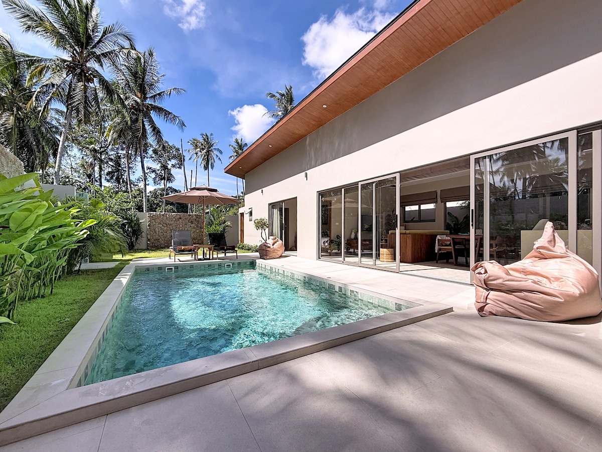 Découvrez la villa SORAYA à Samui et profitez de sa proximité à plage ( 5 minutes à pied) Nouvelle villa 3 chambres, entièrement équipée alliant à la fois un style moderne par son architecture et une ambiance zen et décontractée par sa décoration japandi et ses plantes tropicales. Elle dispose d’une piscine privative avec douche extérieure et d’un emplacement de parking couvert. Accès WIFI rapide Totalement sécurisée: serrure connectée, portail électrique Idéalement située (Nord de l’île)