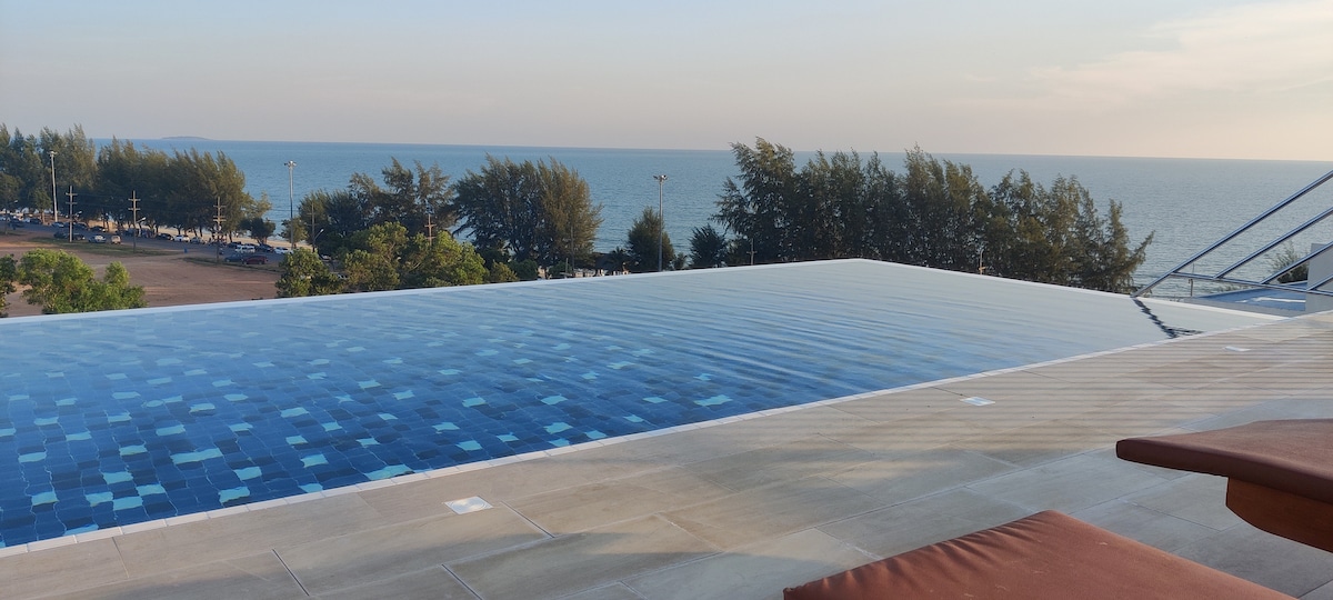 The modern fully furnished room facing ocean (Mae Ram Phung Beach) will chill out your day off. High floor is not only giving you the view but the wind would relax you as much as the waves sound pass into your comfort room. Rayong is just about 3 hours drive from Bkk. Mea Ram Phueng beach is quiet and clean, but convenient to find many good seafood restaurants and cafes. You may enjoy many activities such as Beach picnic Nature trail Cycling Kayaking or Surfing(Raining season) in neighborhood.