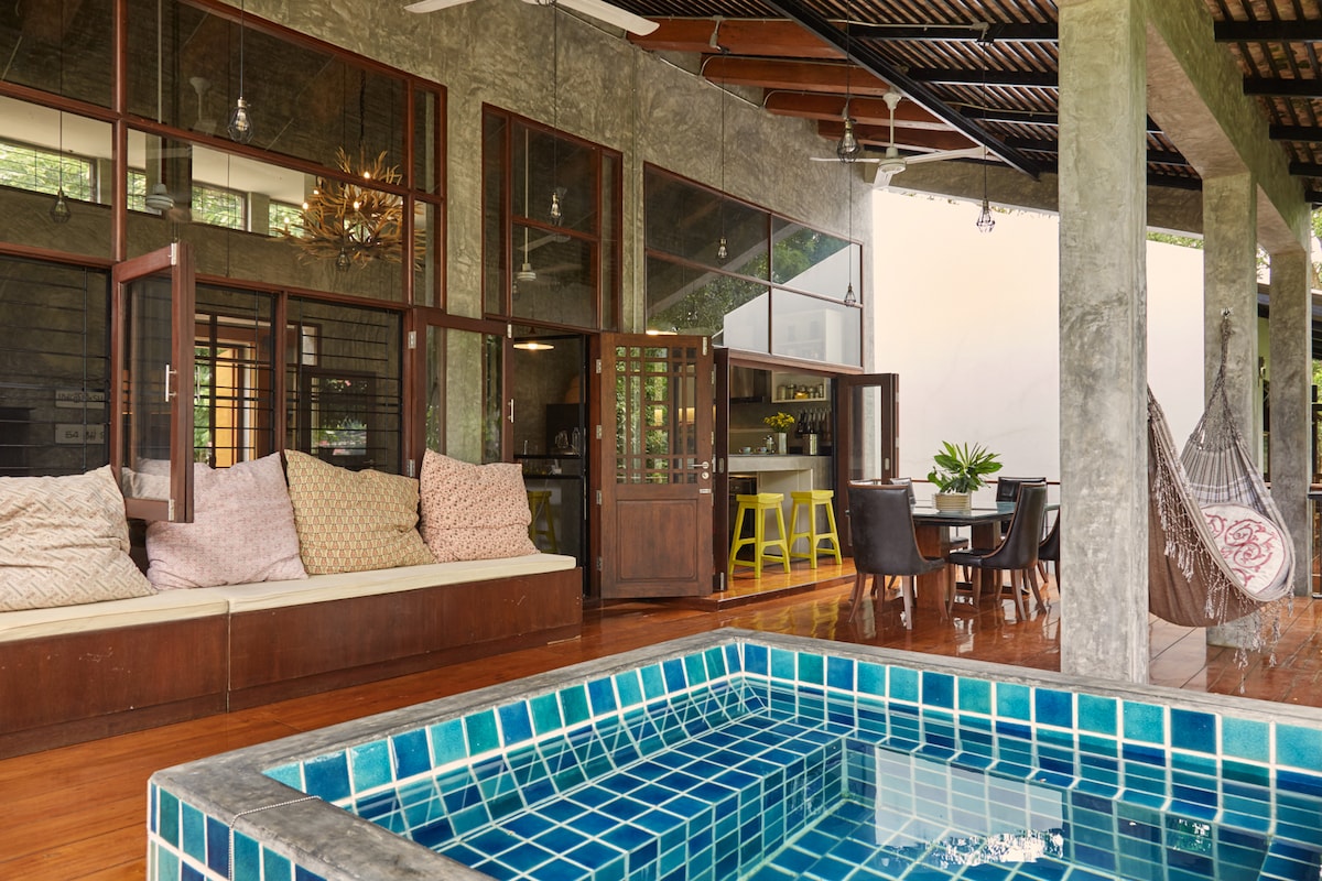 Comfortablhouse is in privacy area with English Country style. Very good Security, nature view and easy go to the city, airport, market area departmentstore, Spa, hospital, Top attraction and Aventure Ativity. Big kitchen and nice dinning area in the house BBQ grill area outside the house. 10 min to The old city and Niman Road 15 min to Airport 20 min to elephant camp