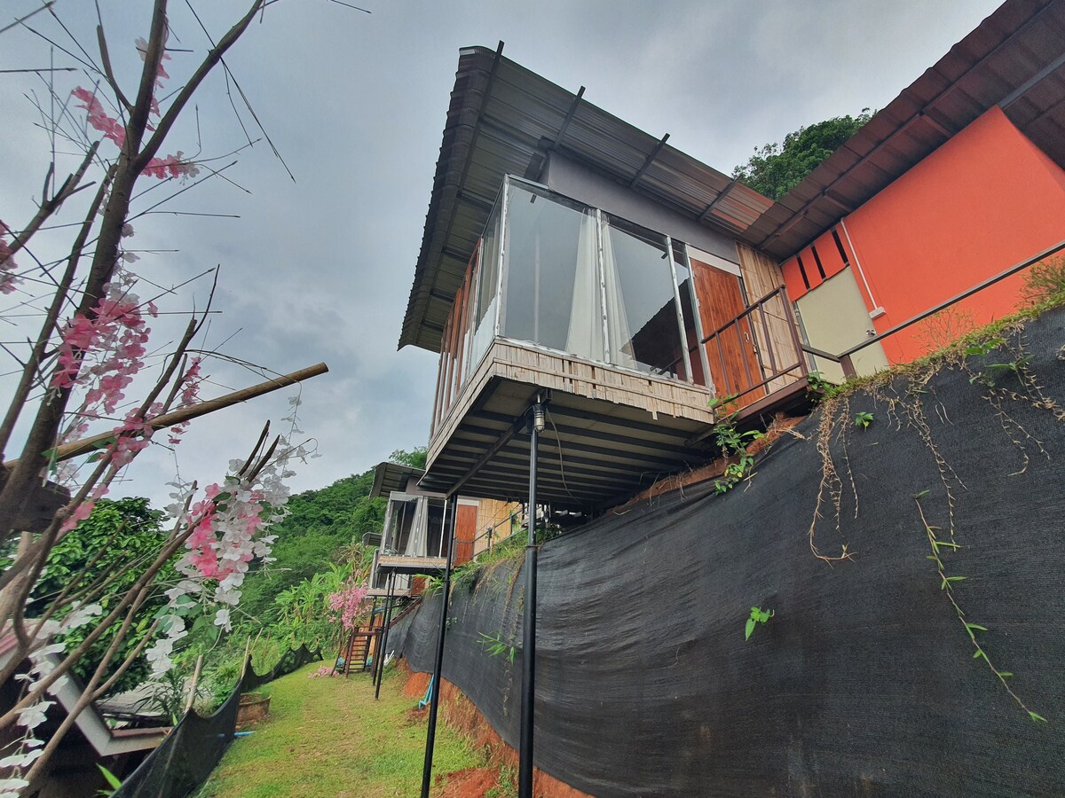 Welcome to a hobbit-esque haven with breathtaking views of nature, just 45min from Chiang Mai. This enchanting room features a double bed, a private bathroom, an outdoor Thai kitchen, and a spectacular private terrace. It's the perfect spot to unwind and recharge your batteries. For remote workers, there's super-fast fiber-optic internet with a private router in the room. Please note, the electricity bill is payable on top of the Airbnb fees (check the house rules).