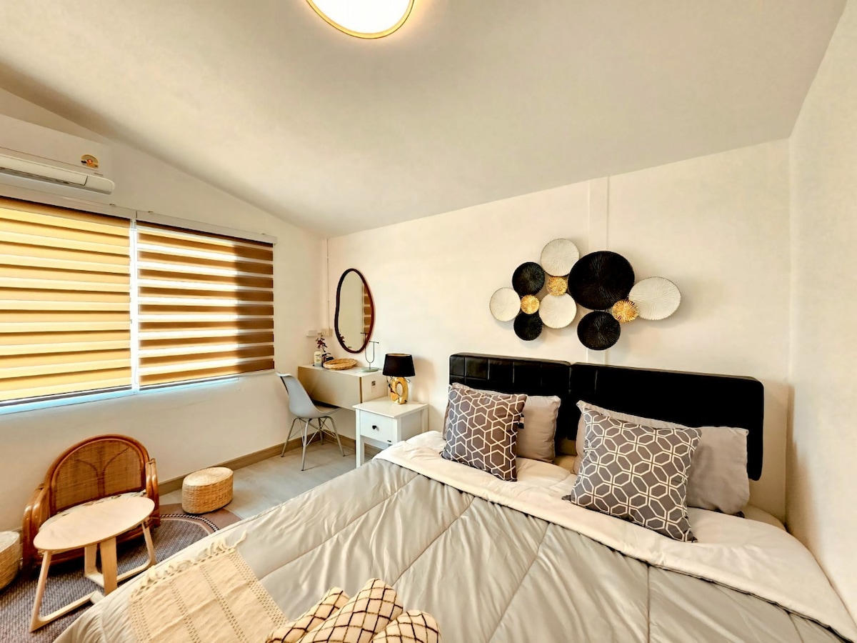 想要暂别城市的喧嚣,寻找一处让心灵能好好放个假,悠然的自然安静角落吗? 欢迎来到这座位于清迈湄林区的绽放之家民宿,一片被稻田、古寺与群山环绕的宁静天地。 整个民宿占地约6,400平方米,空间布局如下: 一栋主楼 + 两栋附楼 共5间卧室,6间卫生间 附楼设有一间约70平方米的瑜伽/冥想空间 另外还配有常驻的泰语阿姨,协助照看日常所需 。 这里适合真正想要融入自然、疗愈身心、禅修打坐或是进行家庭团聚、深度度假的朋友。 您还能近距离体验一年三季的稻米从播种到收割的过程,感受兰纳王国这片土地的呼吸与季节的节奏。 配套与周边亮点: 步行2–3分钟可达附设农场的咖啡厅与早午餐厅(提供免费Wi-Fi) 10–15分钟车程可到达当地大象营、小型瀑布与自然小道 约30分钟车程可达 Kad Farang Mae Rim 商圈 周边10分钟内有多家地道泰式餐厅 📍 距离清迈古城与机场约40公里(车程约1小时) 这里不仅是住宿,更是一段回归自然、释放压力、重拾内在平静的旅程。 欢迎您和自然相遇,让身体与心灵真正放松,从入住清迈绽放之家开始。