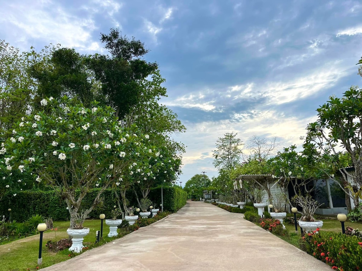 想要暂别城市的喧嚣,寻找一处让心灵能好好放个假,悠然的自然安静角落吗? 欢迎来到这座位于清迈湄林区的绽放之家民宿,一片被稻田、古寺与群山环绕的宁静天地。 整个民宿占地约6,400平方米,空间布局如下: 一栋主楼 + 两栋附楼 共5间卧室,6间卫生间 附楼设有一间约70平方米的瑜伽/冥想空间 另外还配有常驻的泰语阿姨,协助照看日常所需 。 这里适合真正想要融入自然、疗愈身心、禅修打坐或是进行家庭团聚、深度度假的朋友。 您还能近距离体验一年三季的稻米从播种到收割的过程,感受兰纳王国这片土地的呼吸与季节的节奏。 配套与周边亮点: 步行2–3分钟可达附设农场的咖啡厅与早午餐厅(提供免费Wi-Fi) 10–15分钟车程可到达当地大象营、小型瀑布与自然小道 约30分钟车程可达 Kad Farang Mae Rim 商圈 周边10分钟内有多家地道泰式餐厅 📍 距离清迈古城与机场约40公里(车程约1小时) 这里不仅是住宿,更是一段回归自然、释放压力、重拾内在平静的旅程。 欢迎您和自然相遇,让身体与心灵真正放松,从入住清迈绽放之家开始。