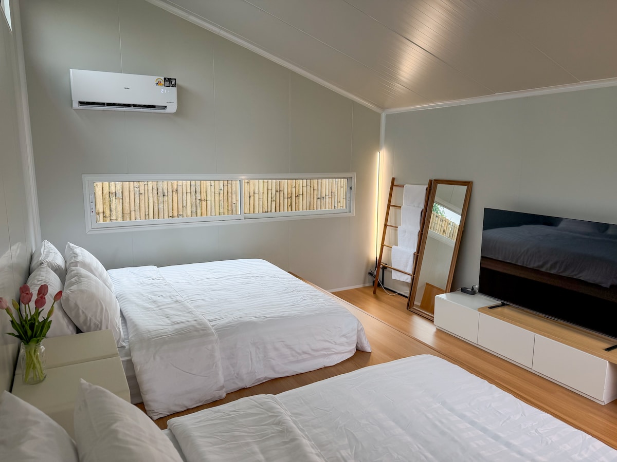 想要暂别城市的喧嚣,寻找一处让心灵能好好放个假,悠然的自然安静角落吗? 欢迎来到这座位于清迈湄林区的绽放之家民宿,一片被稻田、古寺与群山环绕的宁静天地。 整个民宿占地约6,400平方米,空间布局如下: 一栋主楼 + 两栋附楼 共5间卧室,6间卫生间 附楼设有一间约70平方米的瑜伽/冥想空间 另外还配有常驻的泰语阿姨,协助照看日常所需 。 这里适合真正想要融入自然、疗愈身心、禅修打坐或是进行家庭团聚、深度度假的朋友。 您还能近距离体验一年三季的稻米从播种到收割的过程,感受兰纳王国这片土地的呼吸与季节的节奏。 配套与周边亮点: 步行2–3分钟可达附设农场的咖啡厅与早午餐厅(提供免费Wi-Fi) 10–15分钟车程可到达当地大象营、小型瀑布与自然小道 约30分钟车程可达 Kad Farang Mae Rim 商圈 周边10分钟内有多家地道泰式餐厅 📍 距离清迈古城与机场约40公里(车程约1小时) 这里不仅是住宿,更是一段回归自然、释放压力、重拾内在平静的旅程。 欢迎您和自然相遇,让身体与心灵真正放松,从入住清迈绽放之家开始。