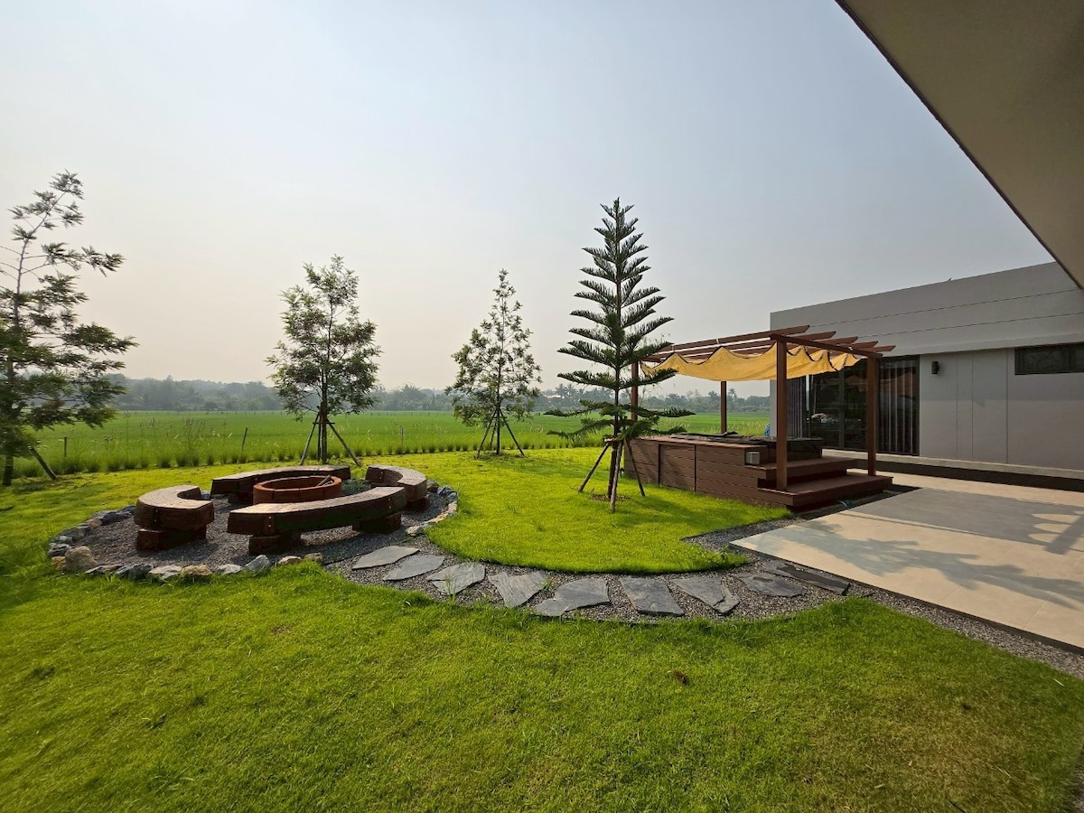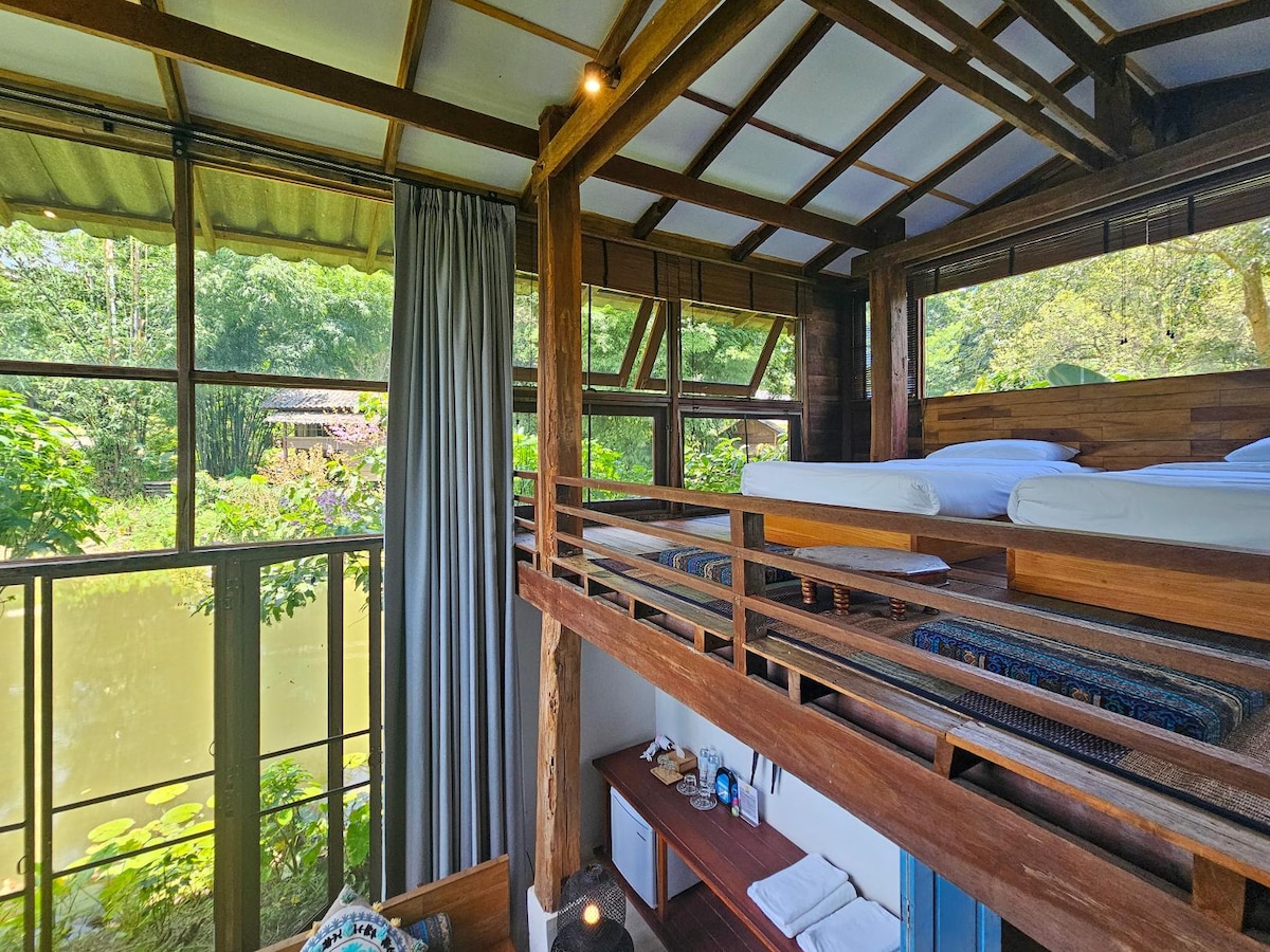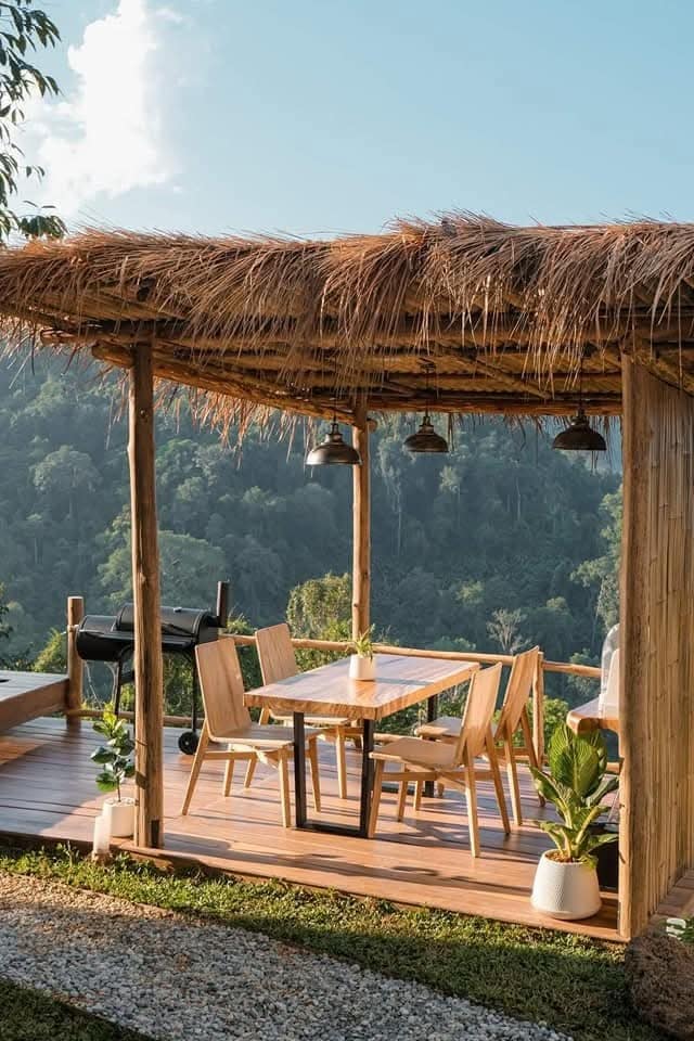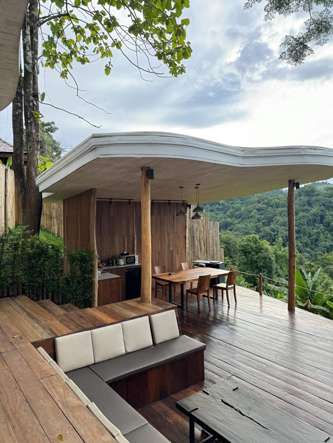 Chalet House, a name with French roots, signifies a wooden house nestled in the mountains. This spacious 56-square-meter house, completed in 2024, combines concrete and bamboo while preserving the Akha-style architecture, blending seamlessly with nature. The house is adorned with bamboo around its structure, and the thatched grass roof provides excellent cooling.