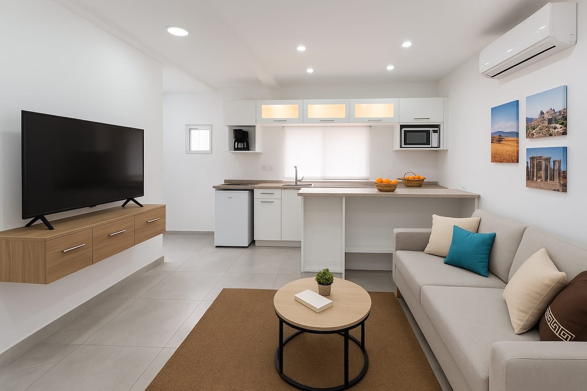 A stylish 1-bedroom apartment in the heart of Rainbow Street, featuring a cozy living room with a sofa bed, full kitchen, modern bathroom, WiFi, and smart TV with all channels. Just 5 km from Downtown Amman, the Roman Temple of Hercules, the Roman Theater, the Citadel, and the Jordan Museum—perfect for exploring the city’s top attractions while enjoying comfort and convenience.