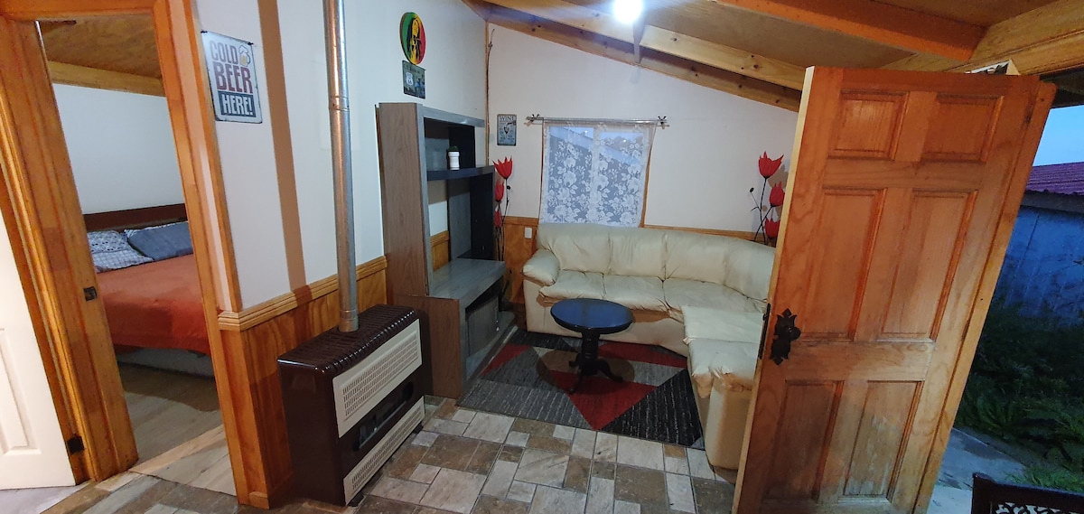 Cómoda cabaña, amplios espacios ubicada en la zona rural a la entrada de la ciudad de Puerto Natales, con una vista privilegiada al fiordo Ultima Esperanza, ideal para relajación y descanso; el pasajero tendrá un contacto directo con la Naturaleza y podrá disfrutar en la época de verano, del fruto típico de nuestra zona, el calafate, avistamiento de aves y fauna típicas de la región. A 5 minutos en auto y 30 minutos caminando a la ciudad, con hermoso paisaje en tu recorrido.