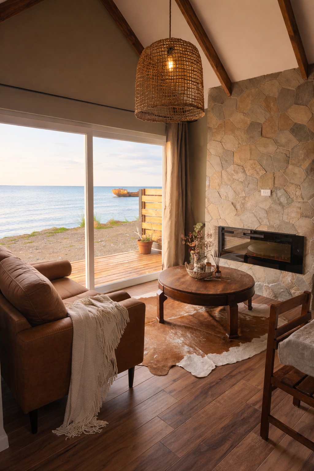 Un rincón privado frente a la laguna, rodeado de montañas y naturaleza. Ideal para desconectarte, descansar y disfrutar en pareja, amigos o familia. Vive la magia de la Patagonia en un entorno único y tranquilo. A solo minutos de Puerto Natales, pero lo suficientemente apartado para vivir la verdadera calma patagónica. El acceso en vehículo 4x4 es recomendado, aunque no excluyente. El acceso es únicamente en vehículo o a través de un transfer privado con costo adicional.