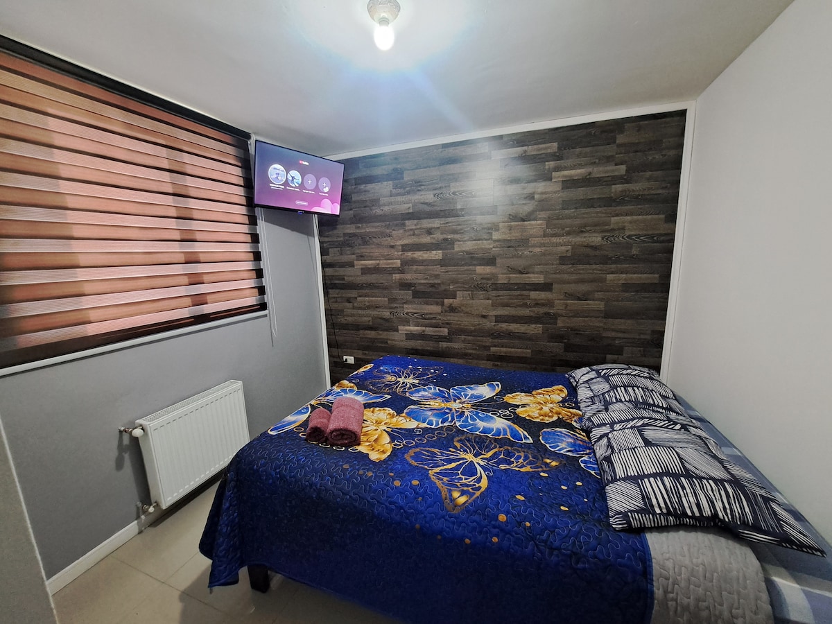 ✅A PASOS DEL CENTRO, RESTAURANTES Y MINI MARKETS.✅CALEFACCIÓN CENTRAL✅CHECK-IN 2PM (FLEXIBLE SEGÚN DISPONIBILIDAD). ✅DOS CAMAS✅FULL EQUIPADO, WIFI, NETFLIX.✅PATIO INTERIOR. Nuestro refugio es tu mejor opción! Disfruta la mejor tecnología en calefacción central, regulable para tu confort. Frente a Ramen japonés, a la vuelta de los mejores completos chilenos, dos cuadras del Mercado. Cercano a 3 minimarket a no más de 2 cuadras. Tenemos 2 Pubs cercanos (2 y 4 cuadras)
