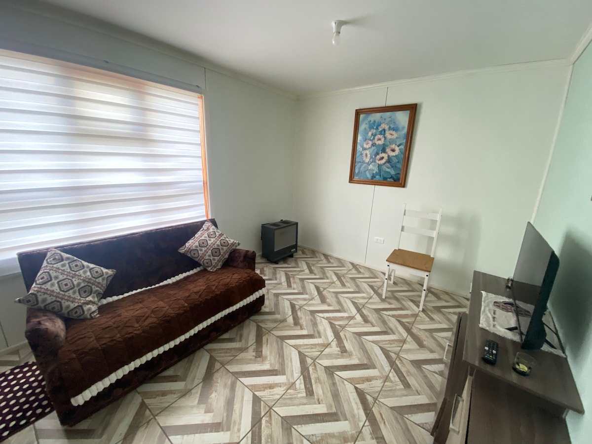 Es un espacio cómodo, calentito, tranquilo, elegante y de fácil y multiple acceso al centro de la ciudad, estamos a 3 minutos del centro en auto, a 25 minutos caminando por la hermosa costanera del estrecho y sus miradores, y a 4 minutos a pie de un punto de locomoción colectiva donde pasa el transporte a todos lados de la ciudad.