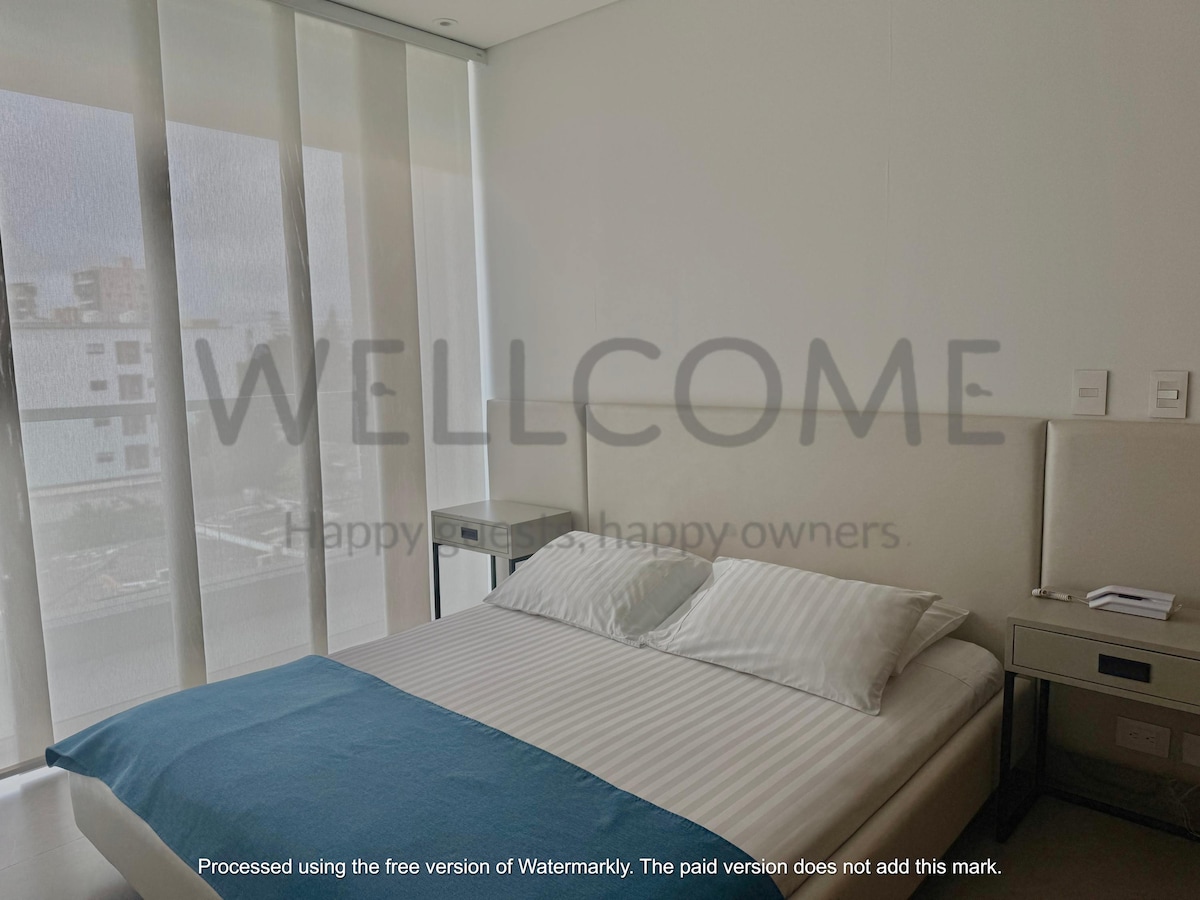 Modern loft apartment with hotel services located 100 meters from the beach, offering stunning views of the Bay of Gaira in the famous Rodadero neighborhood, 10 minutes drive from downtown Santa Marta. The building offers swimming pool, gym, coworking, cinema room and playground. Guests receive complimentary access to our Elite Concierge service.