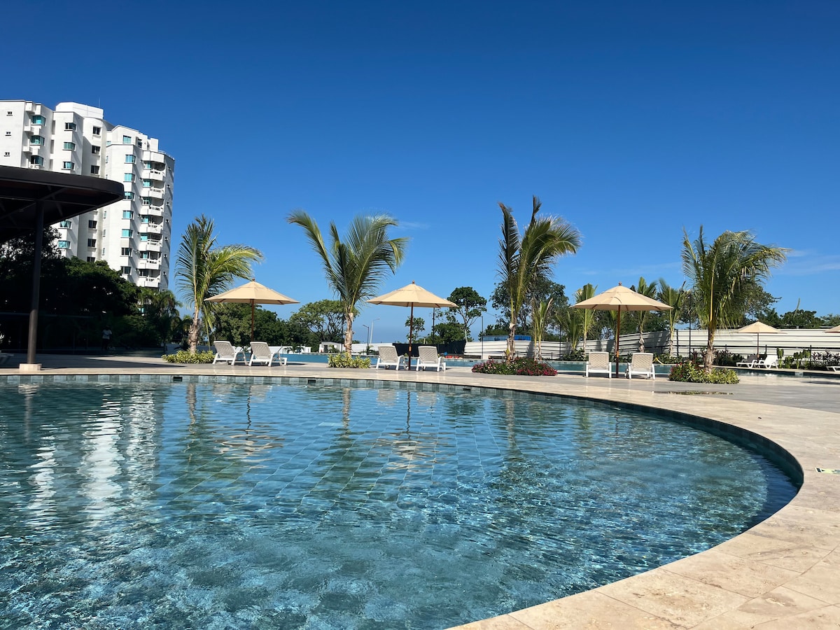 Head up to the rooftop where you can relax in two swimming pools! The apartment is walking distance (around 5 minutes) to the bay area, the beach and the best gastronomy and culture the city has to offer. Feel free to hit us up for recommendations! The apartment’s central location is perfect for visiting the local beaches as well as the most famous nearby attractions: Tayrona Park, Palomino, Minca, and Lost City (to name a few!).