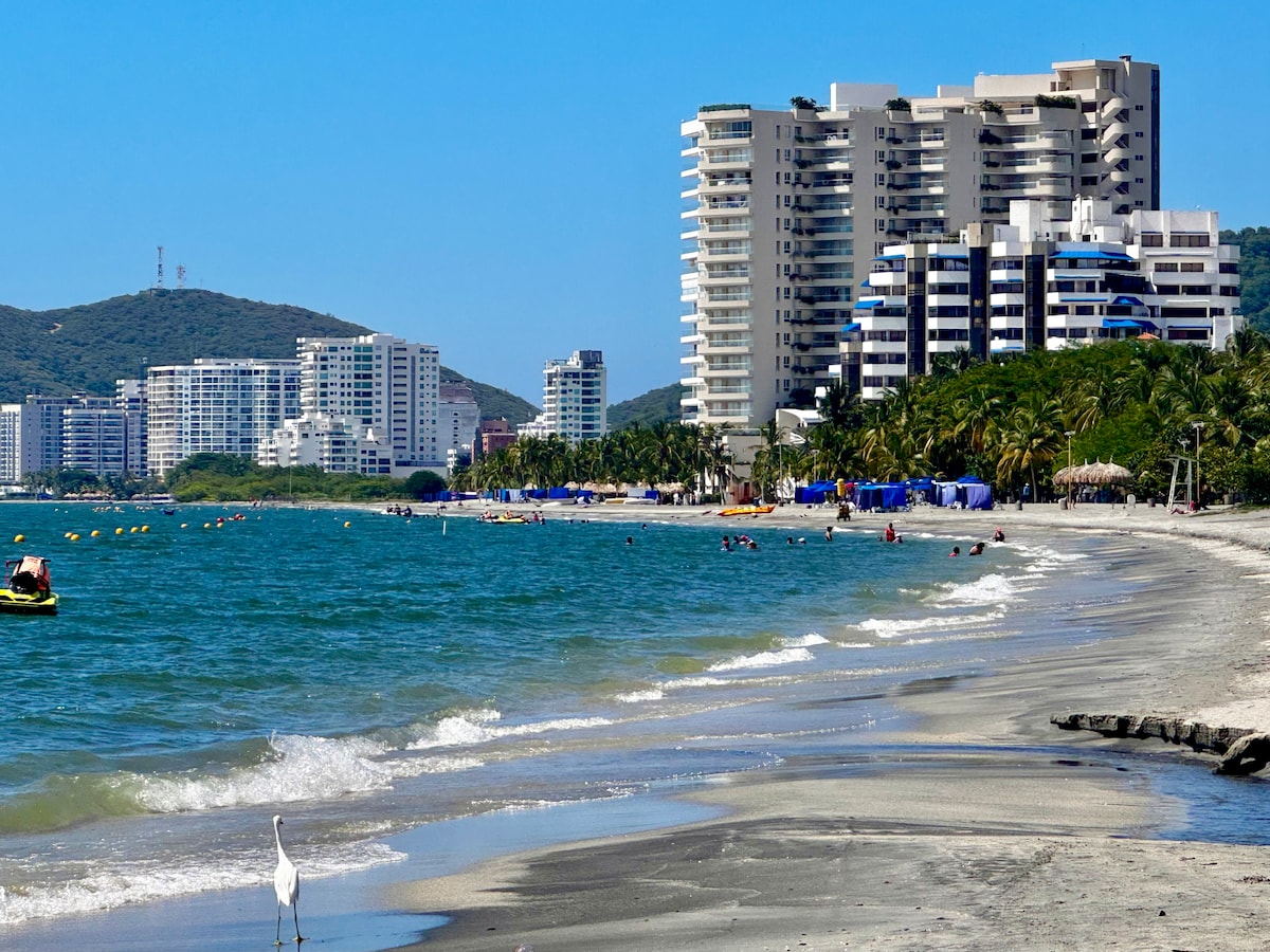 Seafront luxury highrise apartment in Santa Marta´s best beach. There is no better location! Away from the chaotic city center and the overpopulated Rodadero Beach. 5 minutes away from the airport & the new Zazué mall. Large sea front terrace with private jacuzzi and an absolutely amazing picture perfect view, 3 BDR, dining + living room, central air conditioning, all cookware, tableware, linens, towels & basic toiletries.