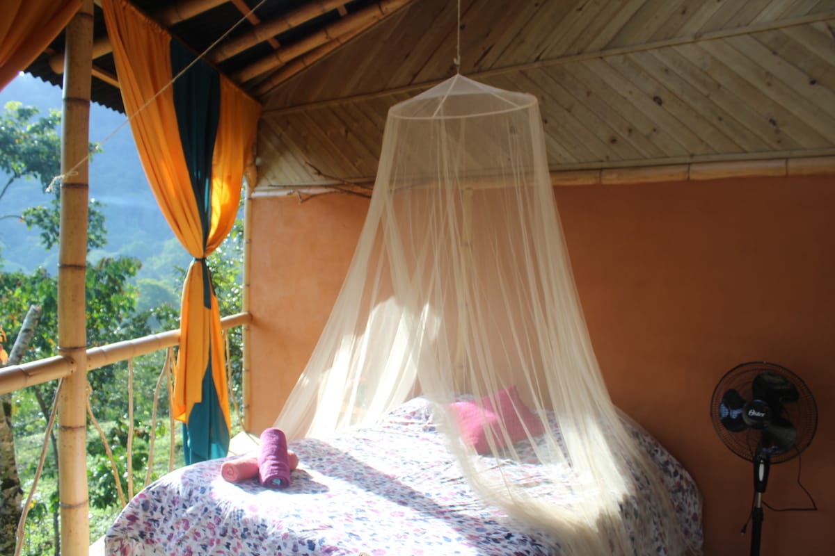 Welcome to Finca La Frecuencia - a permaculture and wellness center in the mountains, 3.5 km from Minca. Our piece of paradise is off-the-grid with solar power, comfy beds and songs of nature. Artesanal vegetarian food and craft drinks are on tap. Two beautiful waterfalls are a 20-minute walk. Hiking and bird watching, yes. We also offer acupuncture, massage and sound therapy, or take a class in meditation, tai chi, singing or music theory. Your stay with us helps grow this dream project.