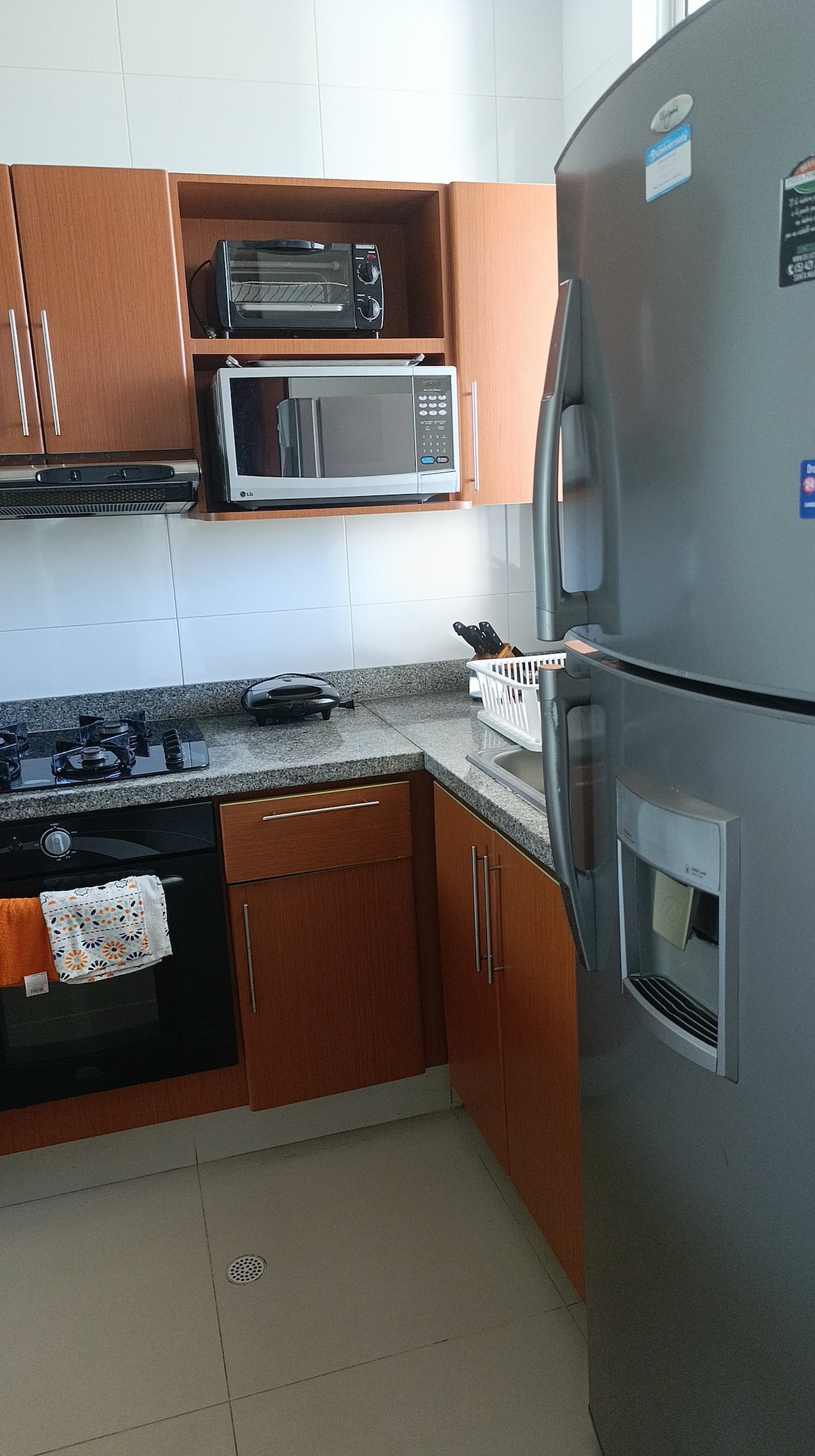 Beautiful apartment in Barranquilla’s northern zone on 46th St (on the exit to Cartagena). It has 2 bedrooms with private bathroom, walk-in closet, Smart TV. 6 beds. Social bathroom, working area, living room with Smart TV and dining table. Fully equipped kitchen as well as washing, drying and ironing stations. PET FRIENDLY with beds and plates for your pets. Homely environment, new, quiet, with modern common areas like gym and pool. You’ll feel quite at home here.