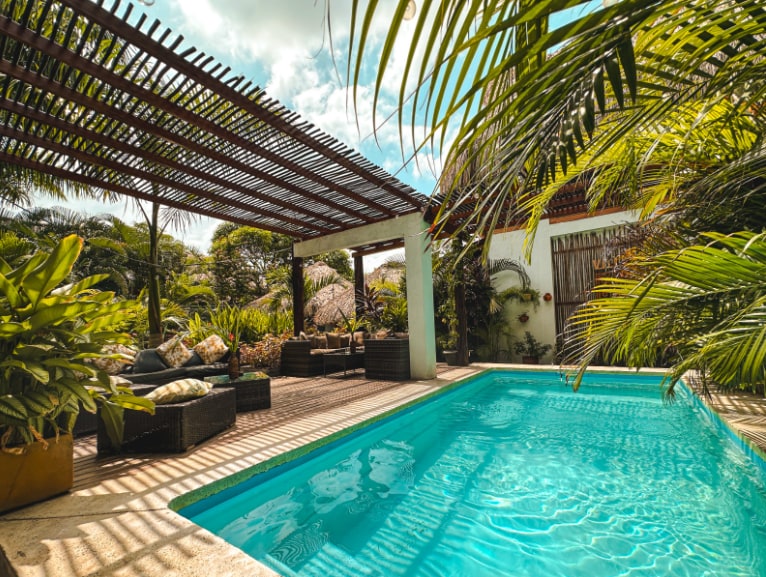 Este encantador y exclusivo lugar para quedarte. Suite Deluxe con Aire Acondicionado 2do Piso Tulipán / Orquídea / Begonia / Hortensia Nuestras 4 habitaciones con aire acondicionado son las más lujosas de Villa Eden, se encuentran ubicadas en el segundo piso con vista a la piscina. Disponen de Baño privado con ducha Italiana y kit de aseo personal Cama Queen-size Mini terraza