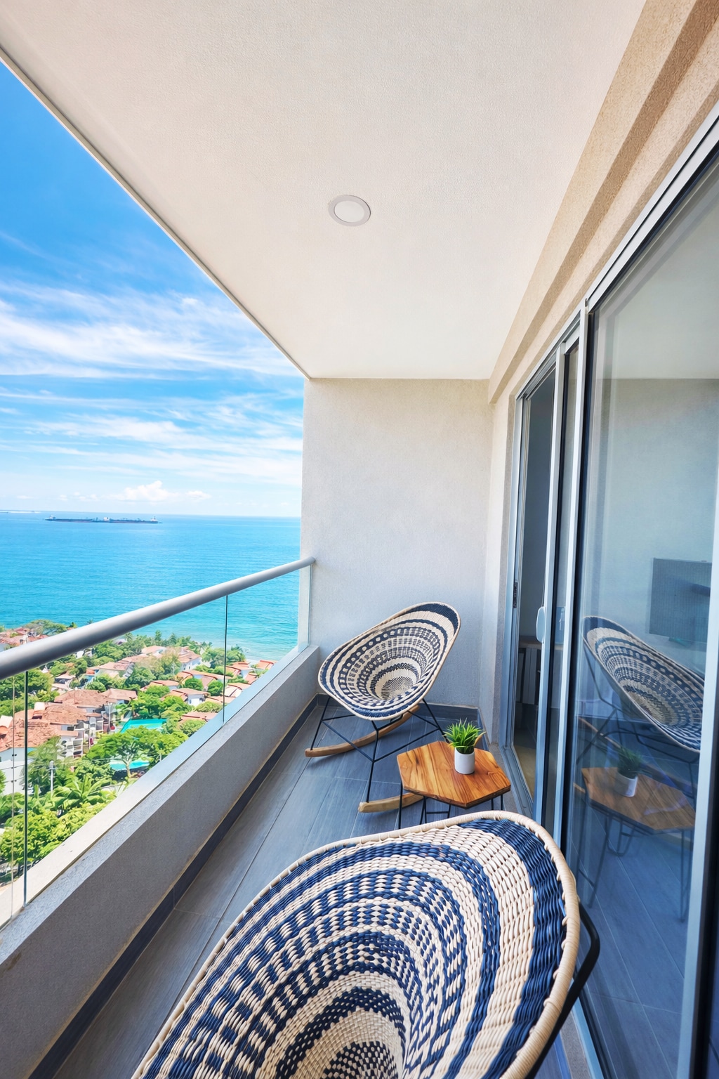 ☀️ 🏖️ 🌊 Oceanfront loft-style apartment on the 17th floor with unmatched sunset views. Enjoy a premium hotel-like experience with access to a semi-private beach and exclusive resort-style amenities: pools, jacuzzi, gym, BBQ, and coworking space. Prime location just 10 minutes from the airport. Ideal for sophisticated getaways or high-end relaxation. High-speed WiFi and a dedicated workspace, fully equipped kitchen, and a spacious private balcony with stunning ocean views.