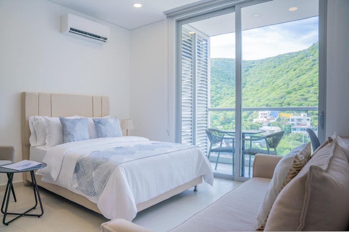 Cierre del Parque Tayrona entre 19 de octubre al 2 de noviembre de 2025. Espectacular vista a la bahía, diseño elegante y cómodo, perfecto para disfrutar de días de descanso en pareja o temporadas largas de trabajo. Cocina completa con vista a la bahía. Amplia terraza privada, aircon, wifi, fibra óptica, televisor conectado a internet. Área social con amplia piscina compartida, vista a la bahía, barbacoa y sitio de descanso. Loft no apto para niños, ni personas con limitaciones para caminar.