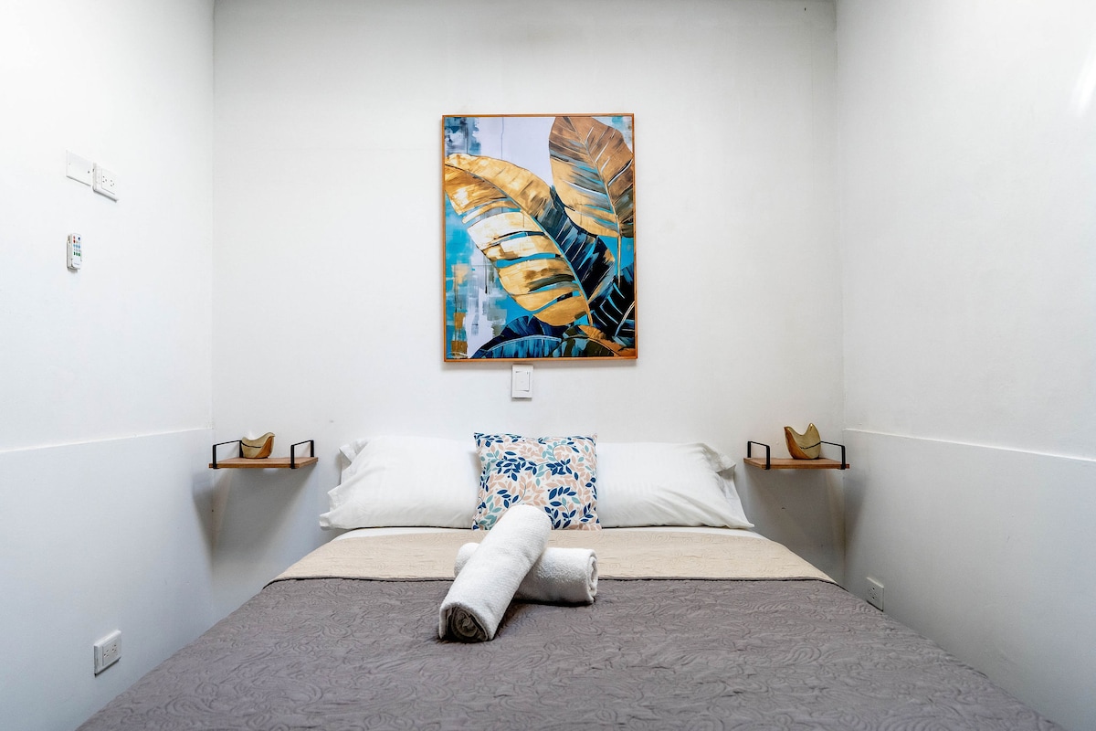 Disfruta de la sencillez de este alojamiento tranquilo y céntrico. El apartamento se encuentra completamente dotado con 1 habitación con su closet y 1 cama doble confortable, 1 baño, cocina Integral, esta cuenta con los utensilios suficientes. Juegos de cama y toallas de calidad y algunos artículos de aseo. Cuenta con aire acondicionado El agua en el baño es tibia debido al clima. Se puede parquear al frente del alojamiento. Hemos equipado todo pensando en tu comodidad y bienestar.