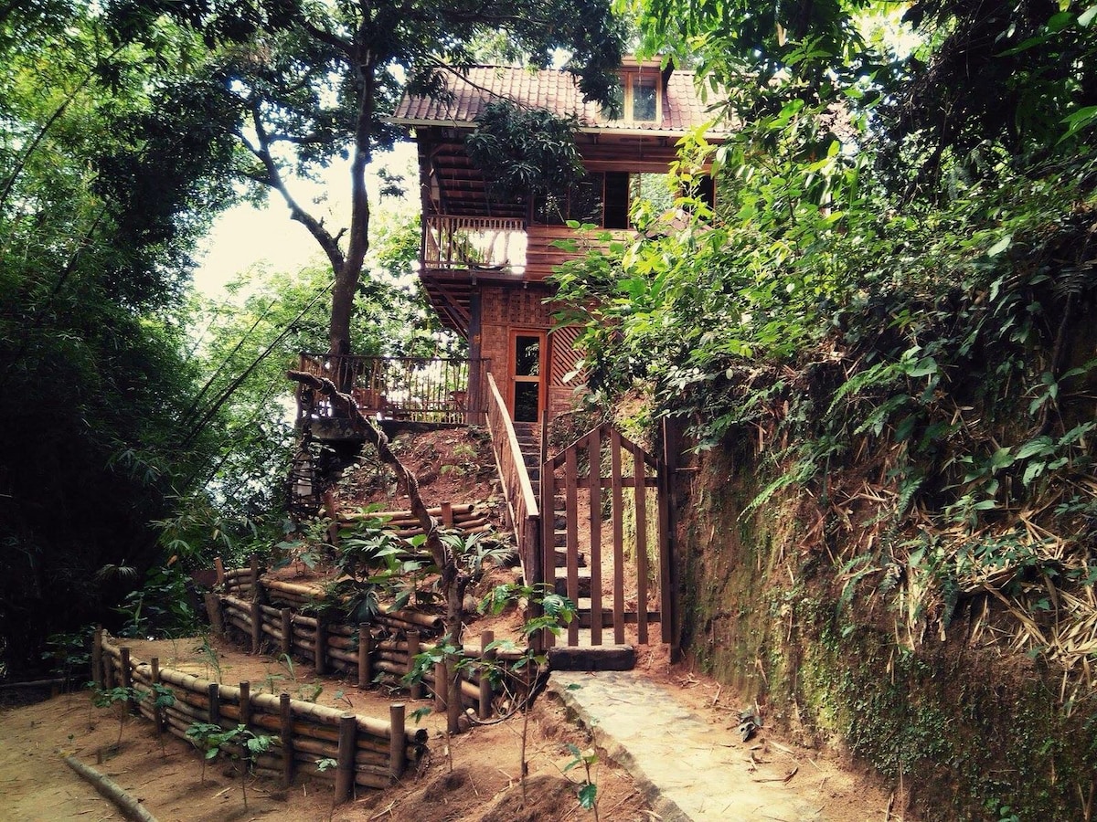 Casa Luna is a beautiful wooden jungle house floating in the sky between the treetops - a place for you to deeply relax and reconnect with nature. Located very close to Minca, it is surrounded by mountains, colorful birds and butterflies of the Sierra Nevada de Santa Marta. Awakened by the sunrise you can have a refreshing dive in the river closeby which is part of the property. The chalet will be entirely for your private use. Please feel welcome to enjoy this piece of paradise!