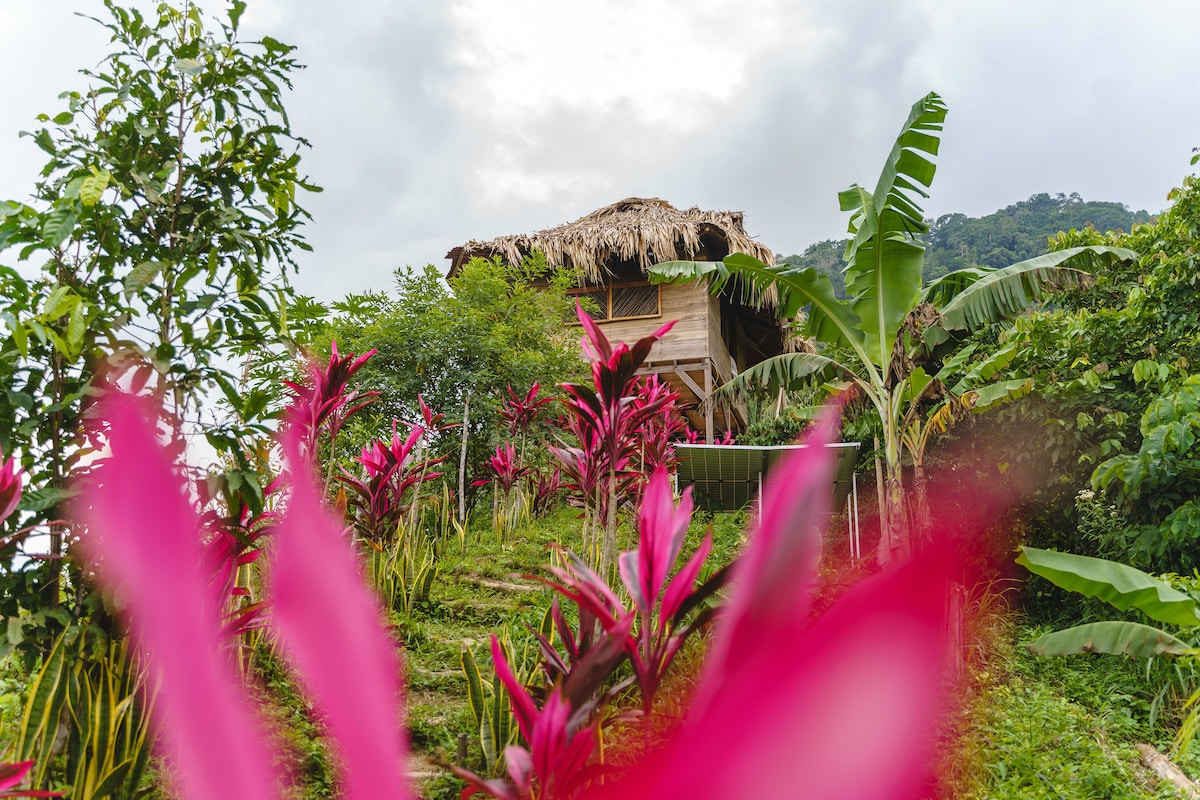 An enchanted and authentic cabin in the jungle in the mountains, with breath taking views and magical nights. Surrounded by only nature, but on the safe grounds of an organic coffee growing Finca, and close to the village. You will forget the rest of the world, when you are here, watching Toucans and parrots and listening to the monkeys and other beautiful animals. Here you will be able to relief your stress and you will sleep peacefully. This is rural Colombia, WiFi doesn’t always work