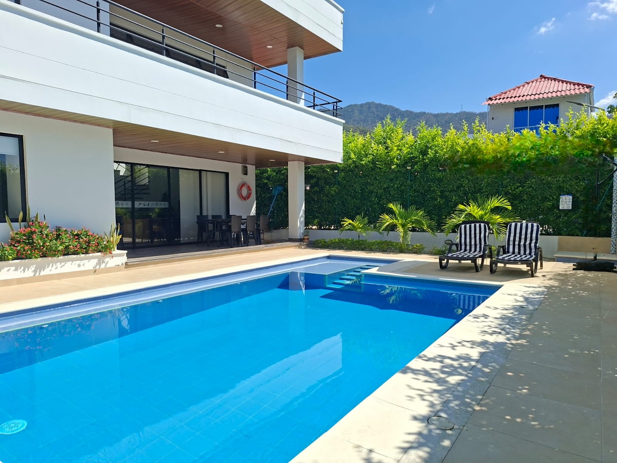 Enjoy an amazing holiday next to the Seaside. Relax by the beach y and the private swimming pool. The green surroundings and the peaceful location are the perfect combination to all the amenities that the house has to offer. You will have an excellent stay. The privilege of having the Sierra Nevada de Santa Marta, the National Park Tayrona and its wonderful and dazzling beaches make Santa Marta an ideal place to discover and enjoy. We will wait for you.