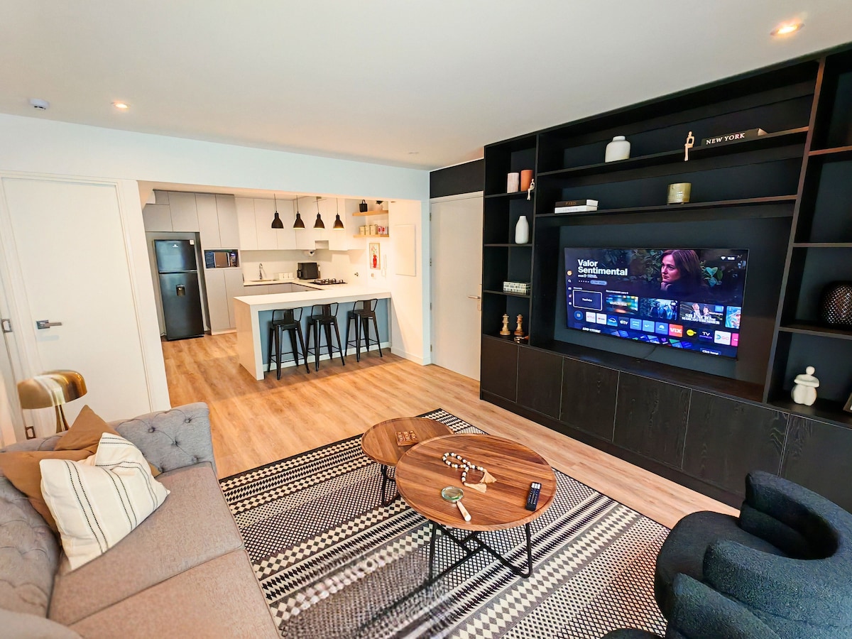 🛏 Loft Distribution: • Master Bedroom: Relax in a comfortable and spacious Queen bed, we have a closet, TV. Perfect for two people🧍🏻🧍🏻. • Cozy Living Room: A perfect space to disconnect. • Fully Equipped Kitchen: Prepare your meals with ease, it has the necessary appliances. • Full Bathroom: Bathroom equipped with amenities. 📸 Discover the beauty on our ig: @vibrant.homesperu