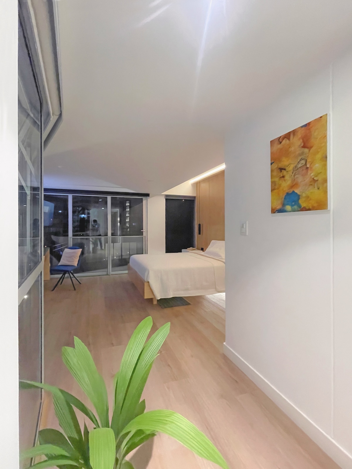 Wake up to open skyline views just half a block from Kennedy Park, in the heart of Miraflores. This luminous boutique loft is ideal for longer stays and remote work. Floor-to-ceiling windows throughout the apartment offer views over Av. Diagonal, the building’s garden courtyard, and the Miraflores skyline. Enjoy rooftop pool, gym, coworking, private parking, ultra-fast Wi-Fi, self check-in, and 24/7 reception—steps from cafés and Lima’s best dining.