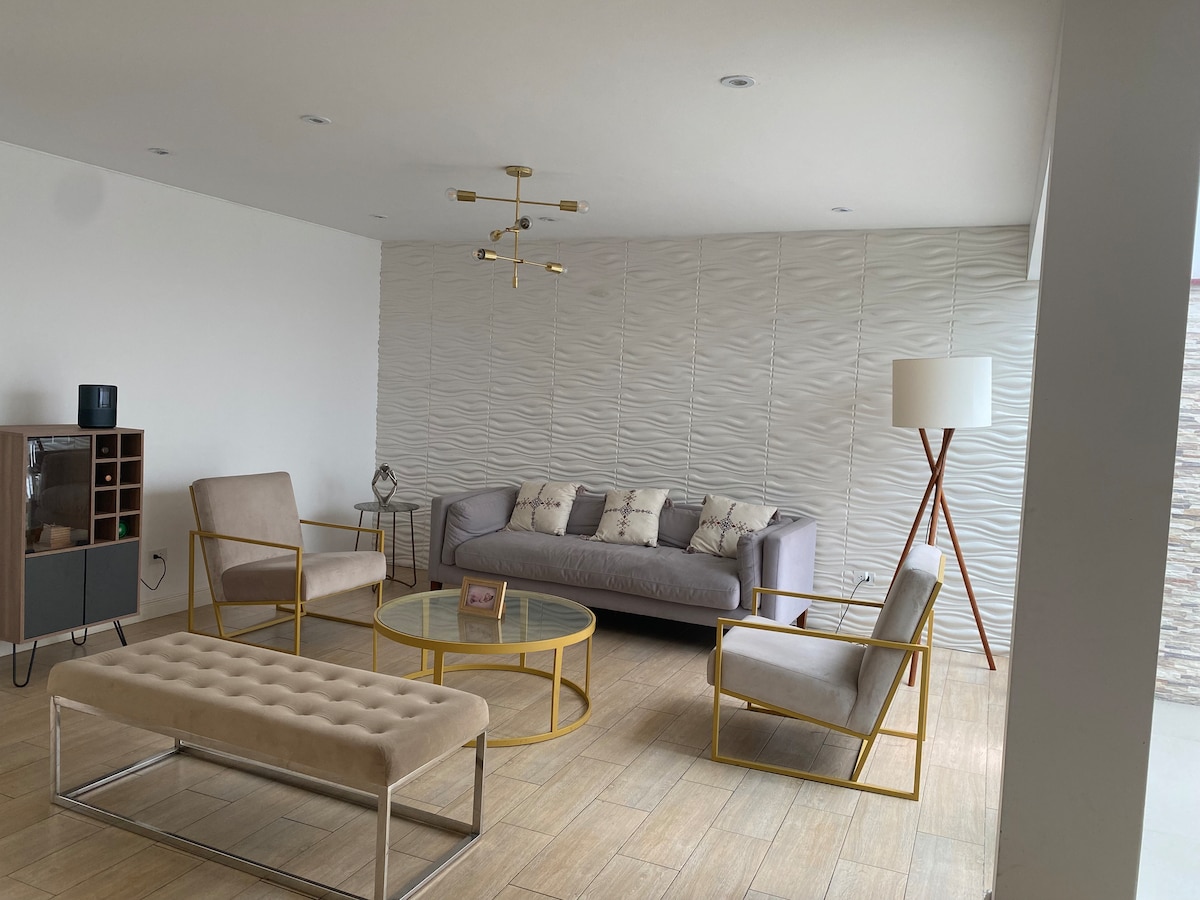 Moderno departamento diseñada para nuestros huéspedes y equipado con todo lo necesario para su estadía. Ubicado en el distrito más seguro de Lima, San Isidro (a pocos pasos de zonas financieras de la ciudad) vecindario rodeado de buenos restaurantes y cafés, cerca de Lima Golf (ideal para caminatas, correr, bisicletas) el Centro Cultural la PUCP (cine y teatro) el parque Centenario el Olivar ( lleno de olivo y de la época virreinal ), el departamento está en una casa moderna con acceso directo