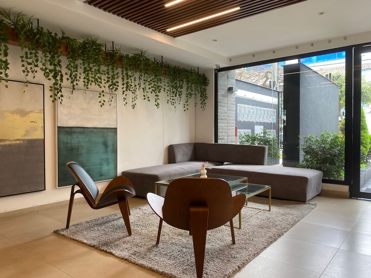 Déjate cautivar por un moderno apartamento frente al mar en el distrito de Magdalena. Disfruta de amaneceres únicos desde el Malecón Grau, relájate en la piscina con vista al mar Pacífico y comparte momentos especiales en tu parrilla privada. A solo 7 min de Miraflores, 15 min del Centro Histórico y 20 min del aeropuerto. Un espacio luminoso y acogedor, diseñado para escapadas románticas, vacaciones inolvidables o viajes de descanso en la Lima moderna.