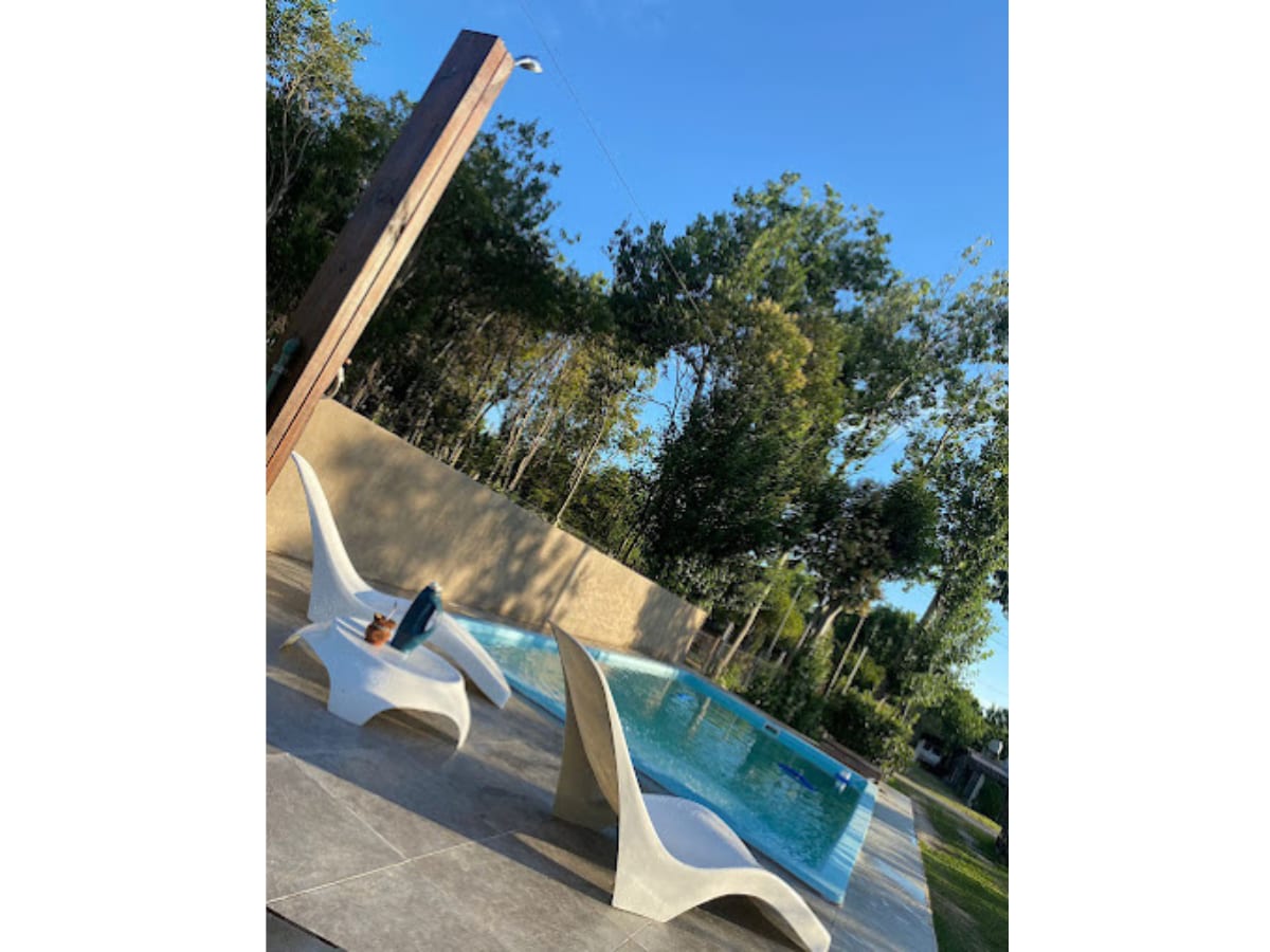 7 hectáreas de arboleda con un jardin maravilloso, una pileta rodeada de verde. Silencio, paz , comodidad y calidez en un lugar unico a 154 km de Buenos Aires. Podrás disfrutar de la contemplación de las estrellas y el canto de los aves autóctonas del lugar. La casa se encuentra totalmente equipada .