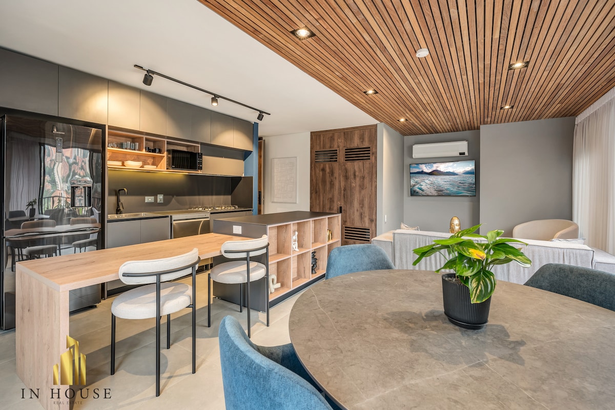 Discover comfort in one of the city's top buildings! This prime location blends local charm with modern convenience, welcoming both residents and visitors. Enjoy top-tier amenities: laundry room, gym, spa, steam room, pool, restaurant with room service—and your own private jacuzzi on the balcony. The 82-square-meter apartment features two bedrooms, both with air conditioning. Surrounded by lush greenery, it stays naturally cool, offering a cozy retreat that can even feel a bit chilly at night.