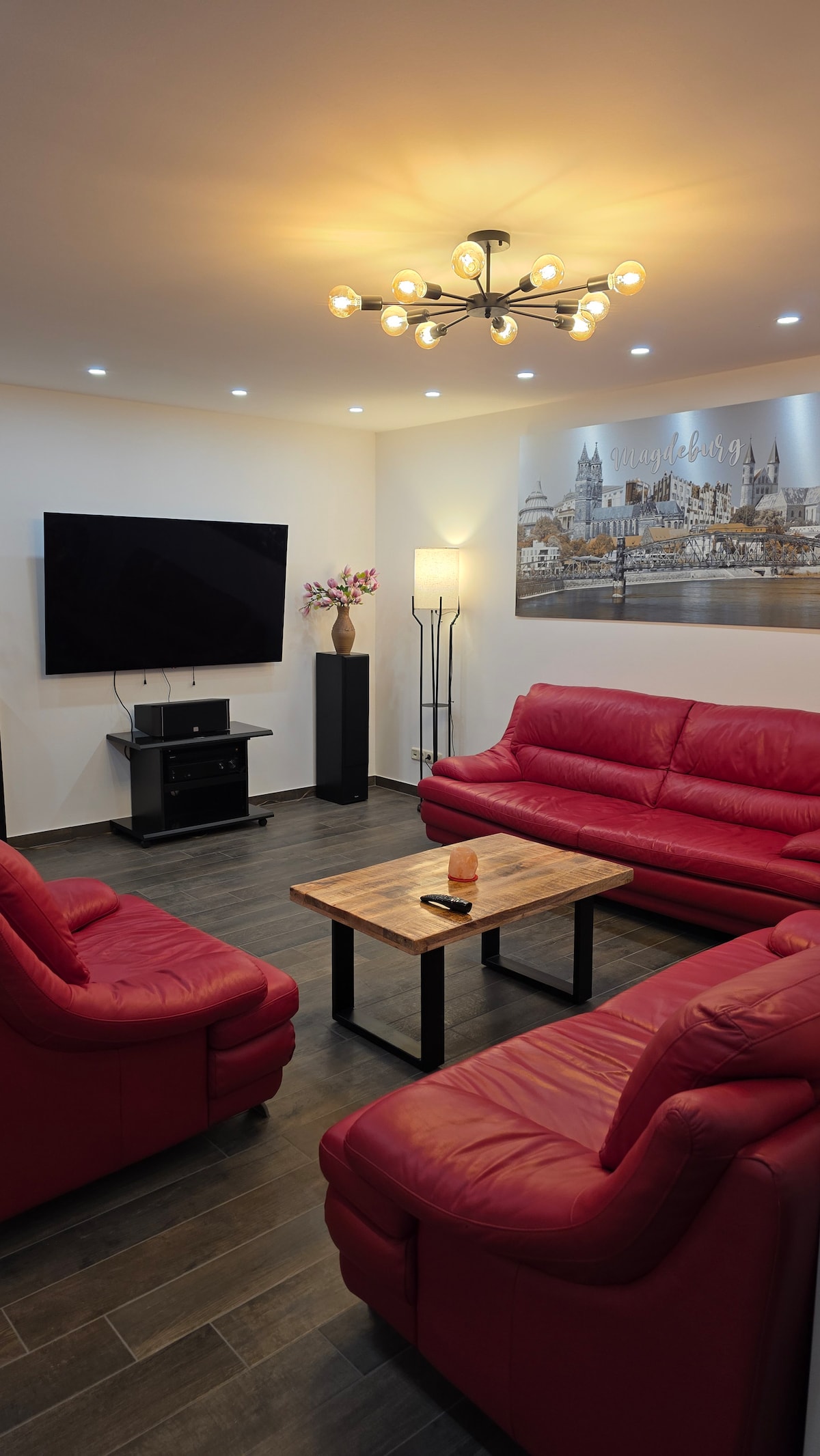Our charming 25 sqm apartment is located in the heart of Magdeburg, just a few steps from the main train station, and offers everything you need for a comfortable stay. The amenities leave nothing to be desired: enjoy relaxed streaming with Netflix and Waipu TV, cook in the fully equipped kitchenette, or use the washing machine for longer stays. The layout includes a cozy living, dining, and sleeping area as well as a modern bathroom with a shower.