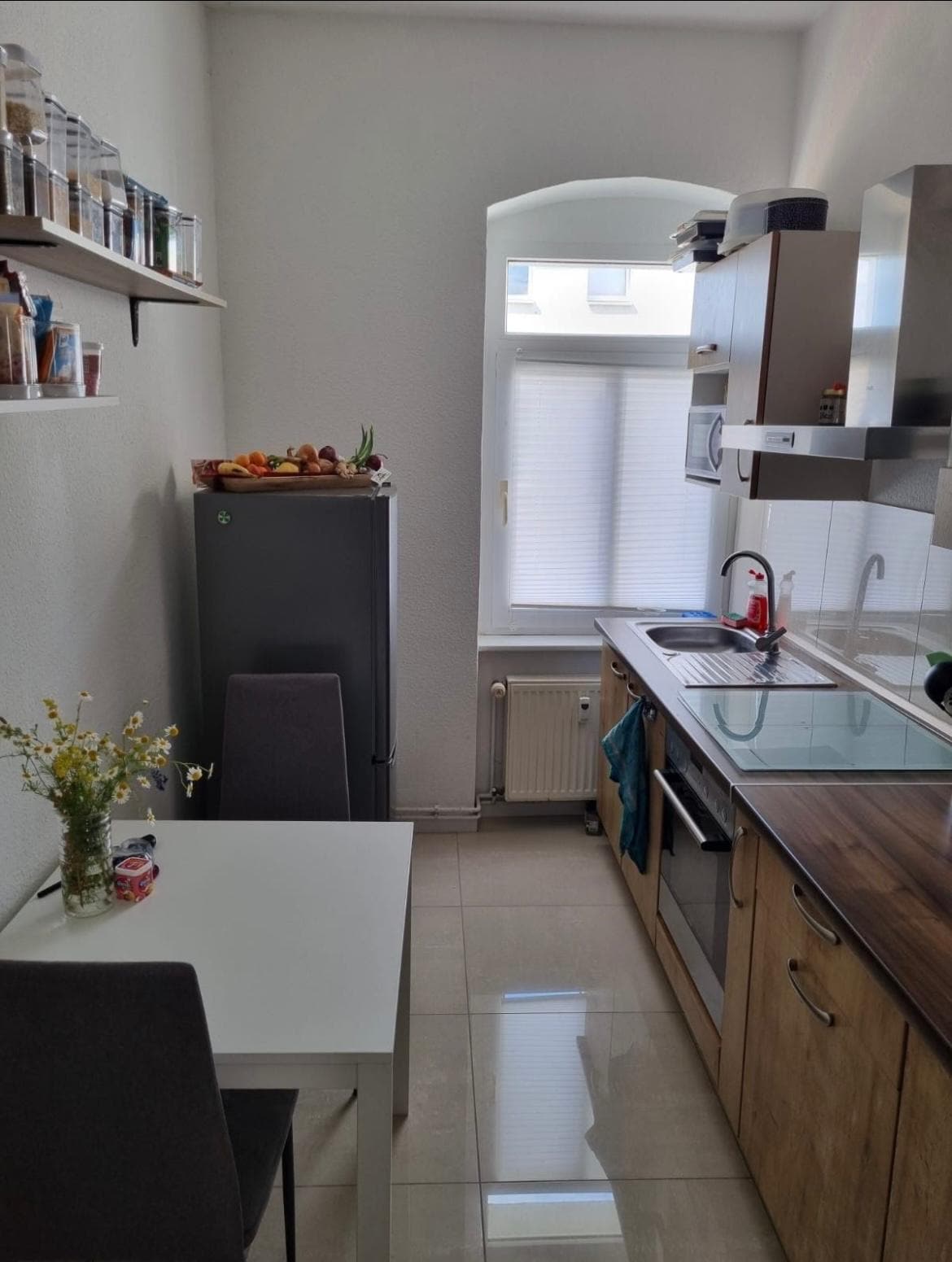 Wir bieten komplett möblierte und neu renovierte Apartments mit - neu eingerichtete Küche (Kaffeemaschine, Toaster, Mikrowelle, Gläser, Geschirr und Besteck, Kühlschrank, Elekro-Herd, Geschirrspüler) - neu möblierte 2-Bett-Zimmer mit Smart-TV, Schreibtisch, Kleiderschrank, große Betten mit Bettwäsche und Bezügen - Bad mit Tageslicht, Dusche, Handtüchern Parkplätze befinden sich auf der Straße vor dem Haus und können unentgeltlich genutzt werden. Ein begrünter Innenhof lädt zum verweilen ein.