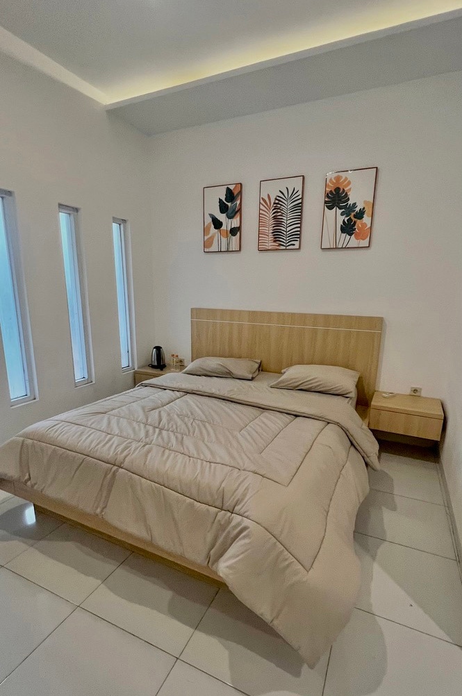 Villa Jogja with private pool & fully furnished Strategic location, hommy, clean, fresh, near the main road and cafe large parking area (Pajero,Fortuner, innova) Specification: - Bedroom 1 - Bathroom 1 - Private mini pool - Kitchen - AC - Electricity 2.200Watt - Closet + Shower - water heater - Security - smart tv 43 inch - bed king size (180X200) - Wifi - table, chair, cupboard Weekday : 350K / Day Weekend : 500K / Day STOK TERBATAS !!! HARUS BOOKING TERLEBIH DAHULU