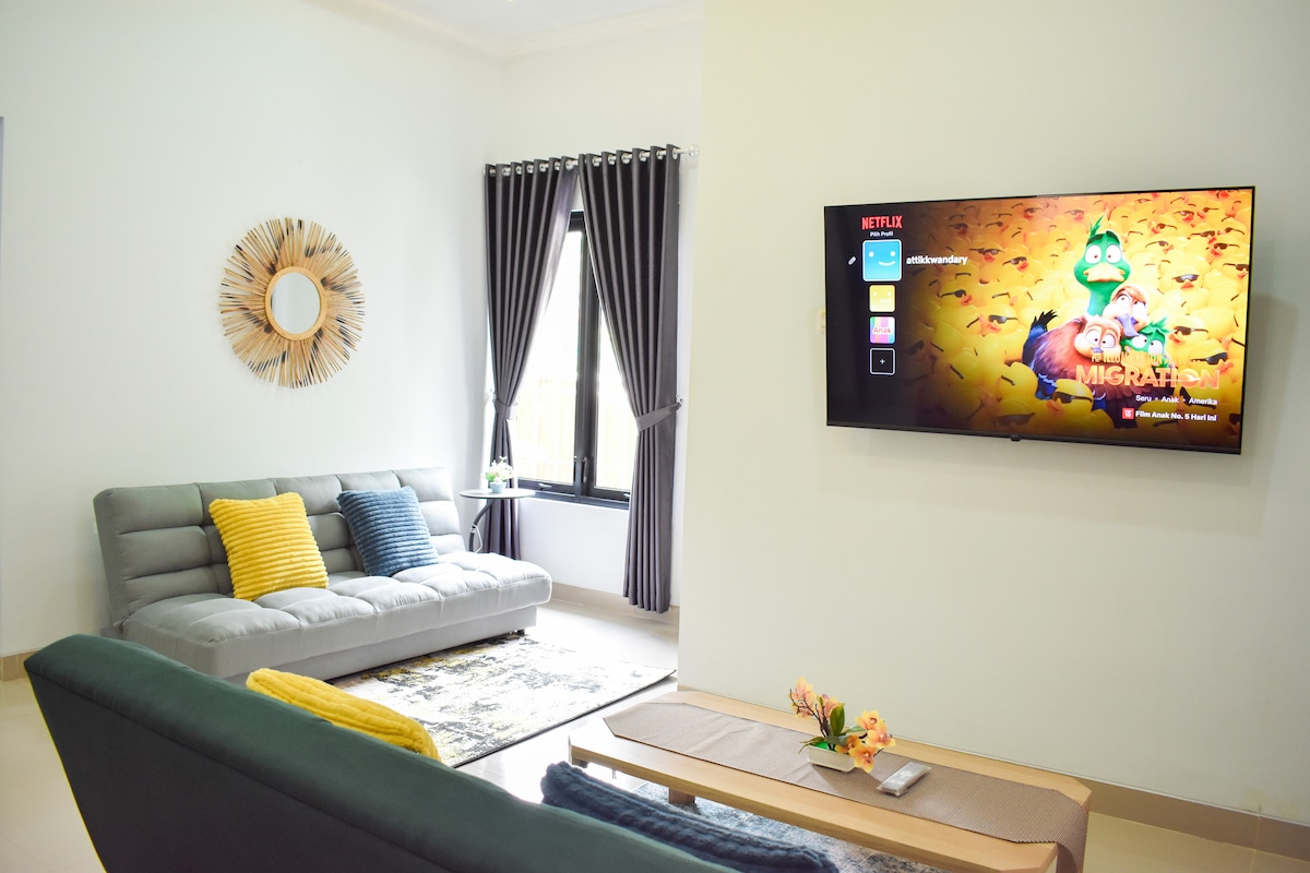 A spacious vacation home, fresh air, with paddy's field and Yogyakarta City scenery. Just 5 minutes from Universitas Islam Indonesia (UII) and not far from Kaliurang. Relax with the whole family at this peaceful place to stay.
