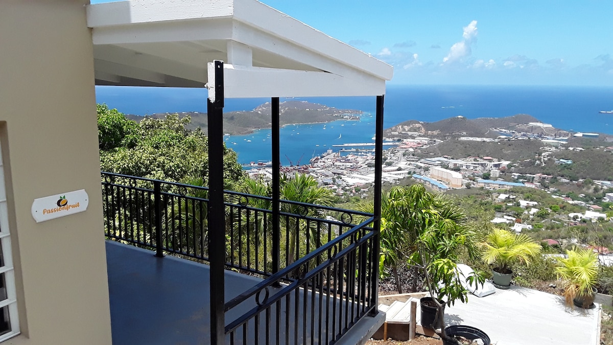 *NO CLEANING FEE* Located on the cool Northside of St. Thomas, our home looks out over a large flat-ish yard & a panoramic view of Magen's Bay, the Atlantic Ocean, and 20 small islands. Your unit has a private entrance 5 steps down from your dedicated parking space. Note: 1. There is no smoking allowed on the deck or in the apartment. 2. Unlike many Airbnbs we do NOT charge a cleaning fee so we ask our guests to sweep and wash their dishes before leaving. 3. No more than 4 guests at ANY time.