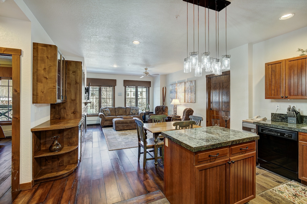 You cannot beat this location; within walking distance to ski lifts and Main Street! This newly renovated, top floor 2 bed/2 bath unit has high vaulted ceilings and scenic ski area views, with everything you are looking for! Underground parking, elevator access, separate ski storage and more! Common areas have been recently updated and this home also includes brand new queen sized adult bunk beds perfect for families or groups to enjoy!