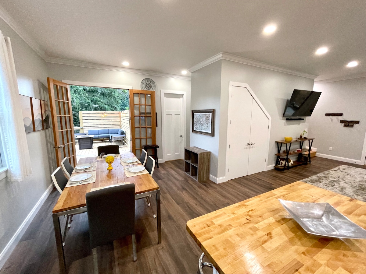 Luxury Chalet- in town, fenced yard, hot tub!