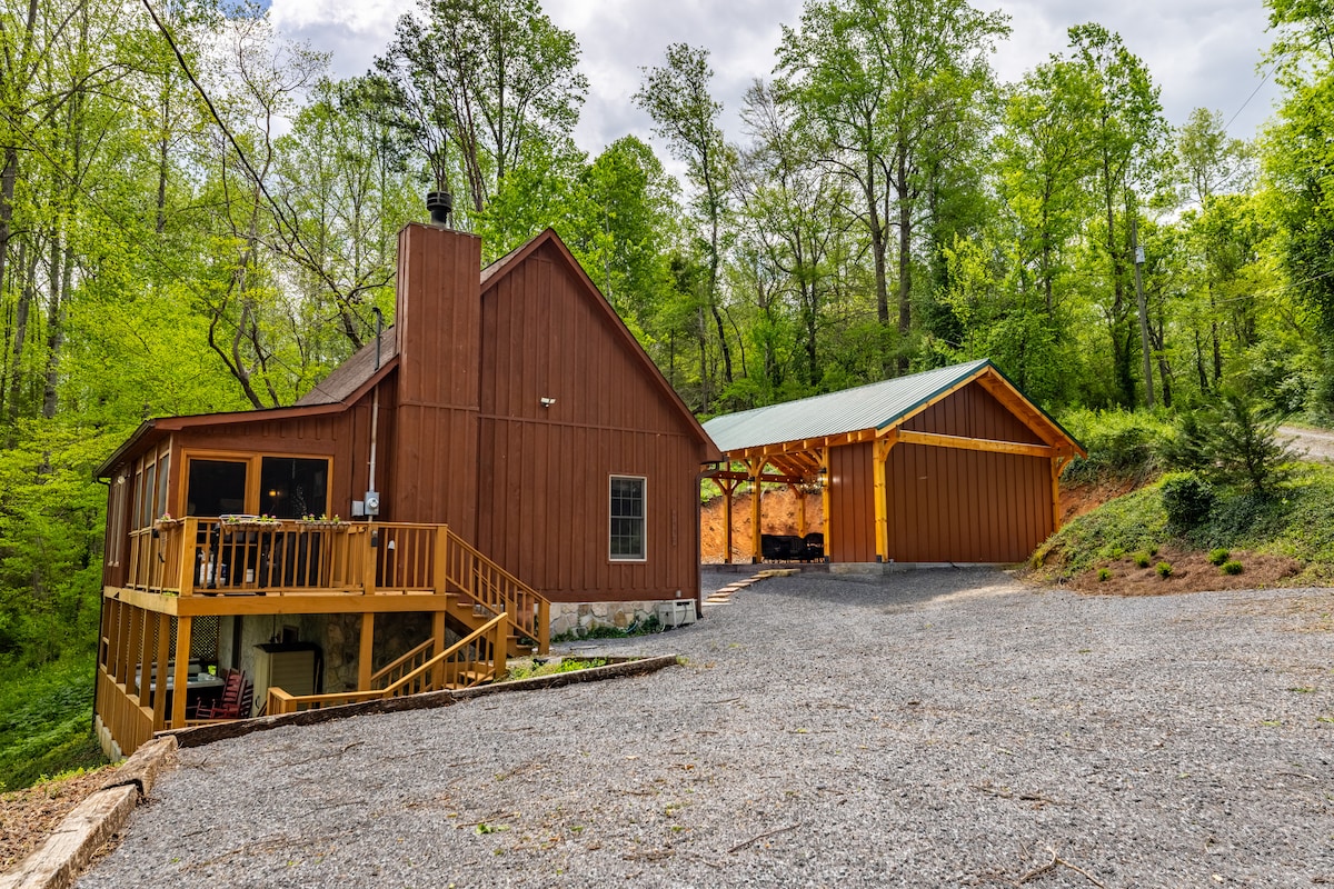 ✔️Studio Cabin in the hills with 1 bed and 1 bathroom ✔️Hot Tub ✔️Lake access for small boats and fishing within walking distance ✔️Pet Friendly (see details below) ✔️Seasonal views of lake from back deck ✔️6 miles from the Parkway in Pigeon Forge ✔️Stainless Steel appliances in new kitchen ✔️Fast WiFi by Xfinity ✔️Multi-Purpose writer's desk ✔️2 Outdoor decks with additional seating and BBQ grill ✔️Roku TV and streaming